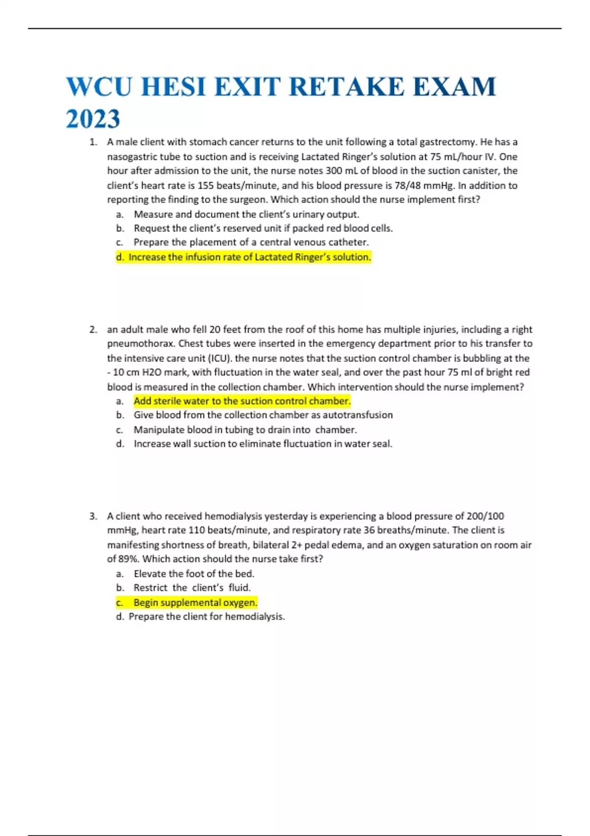WCU HESI EXIT RETAKE EXAM 2023