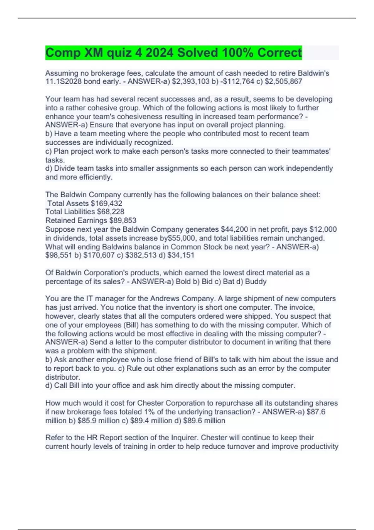 comp xm quiz 4 2024 solved 100 correct