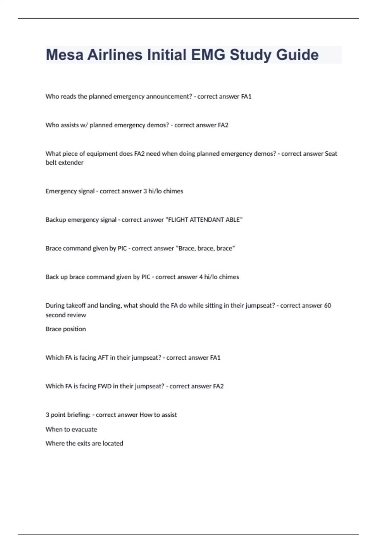 Mesa Airlines Initial EMG Study Guide fully solved graded A+