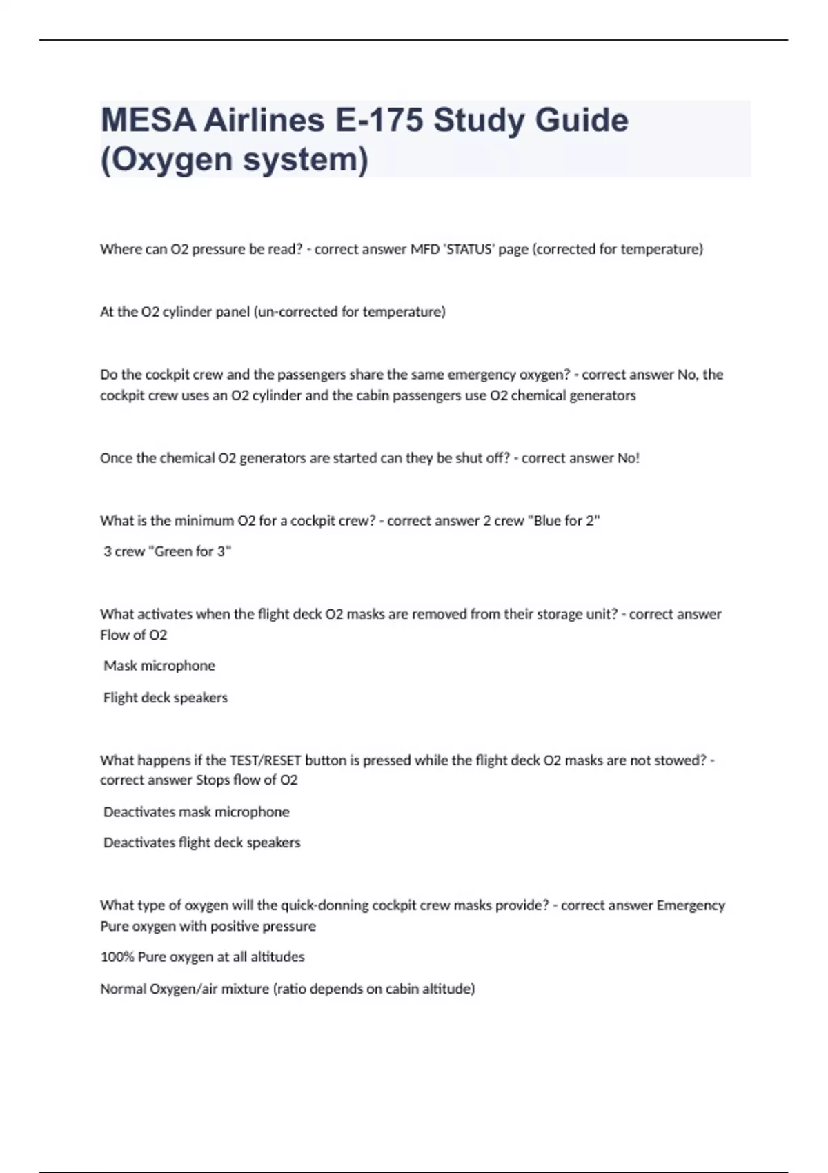 MESA Airlines E-175 Study Guide (Oxygen system)2023/2024 latest update