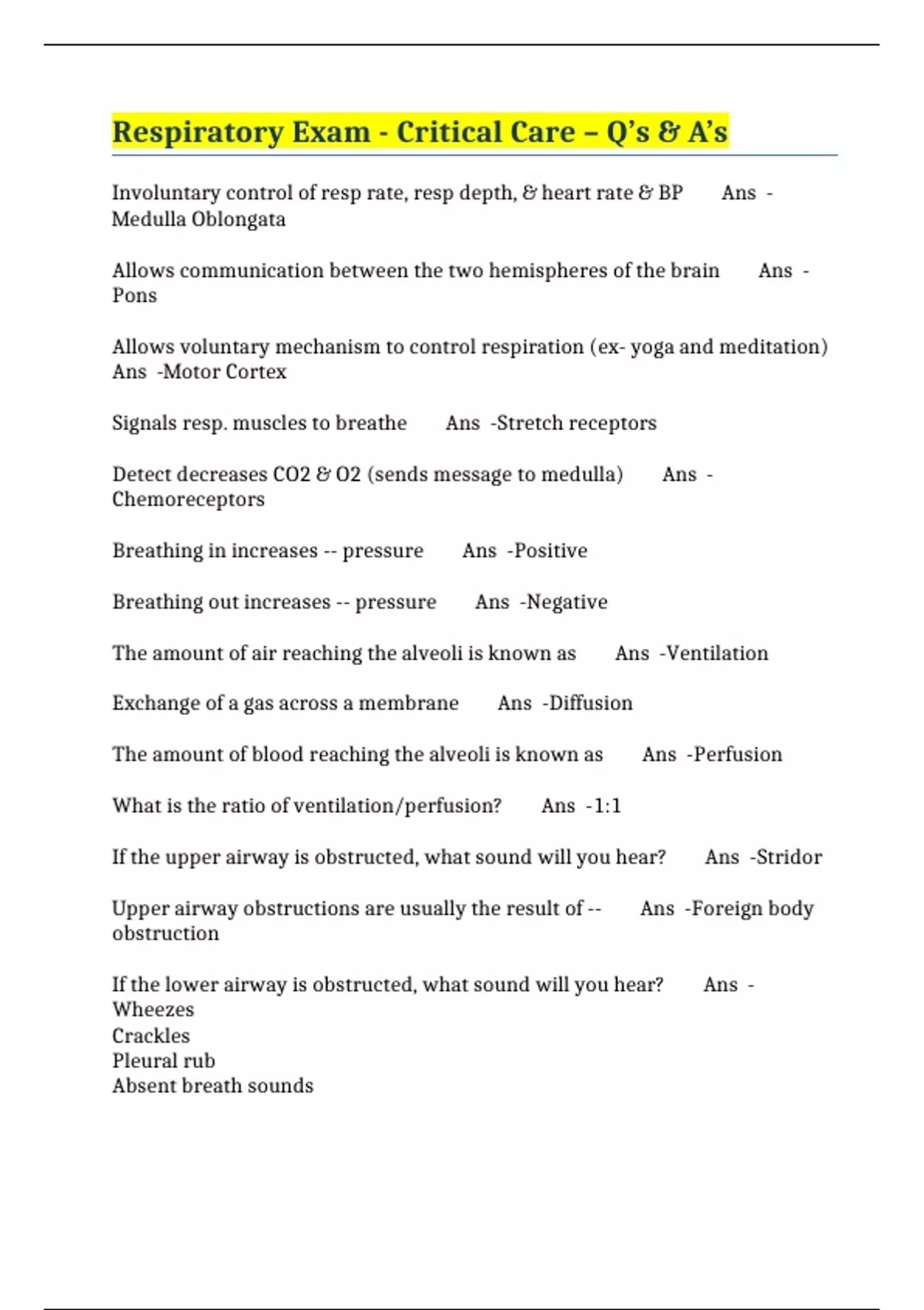 If the upper airway is obstructed, what sound will you hear? Ans -Stridor