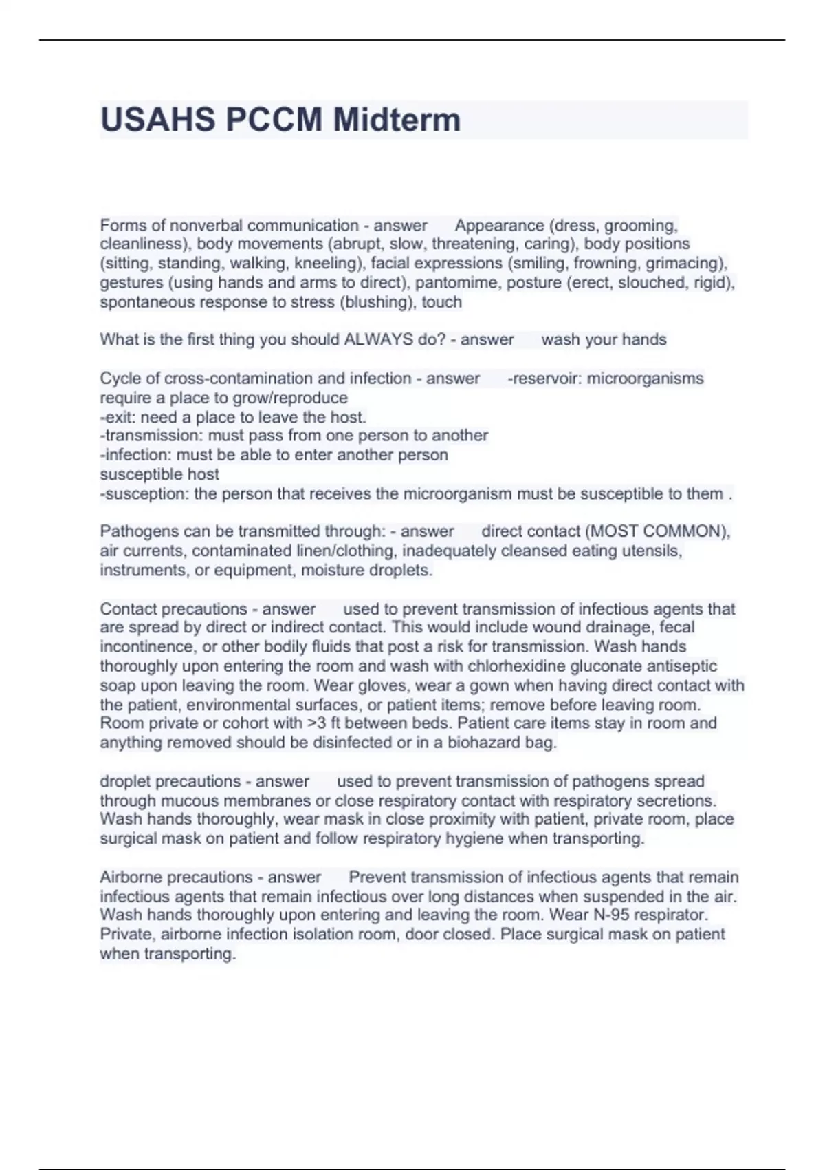 Exam of 7 pages for the course USAHS at USAHS (USAHS PCCM Midterm)