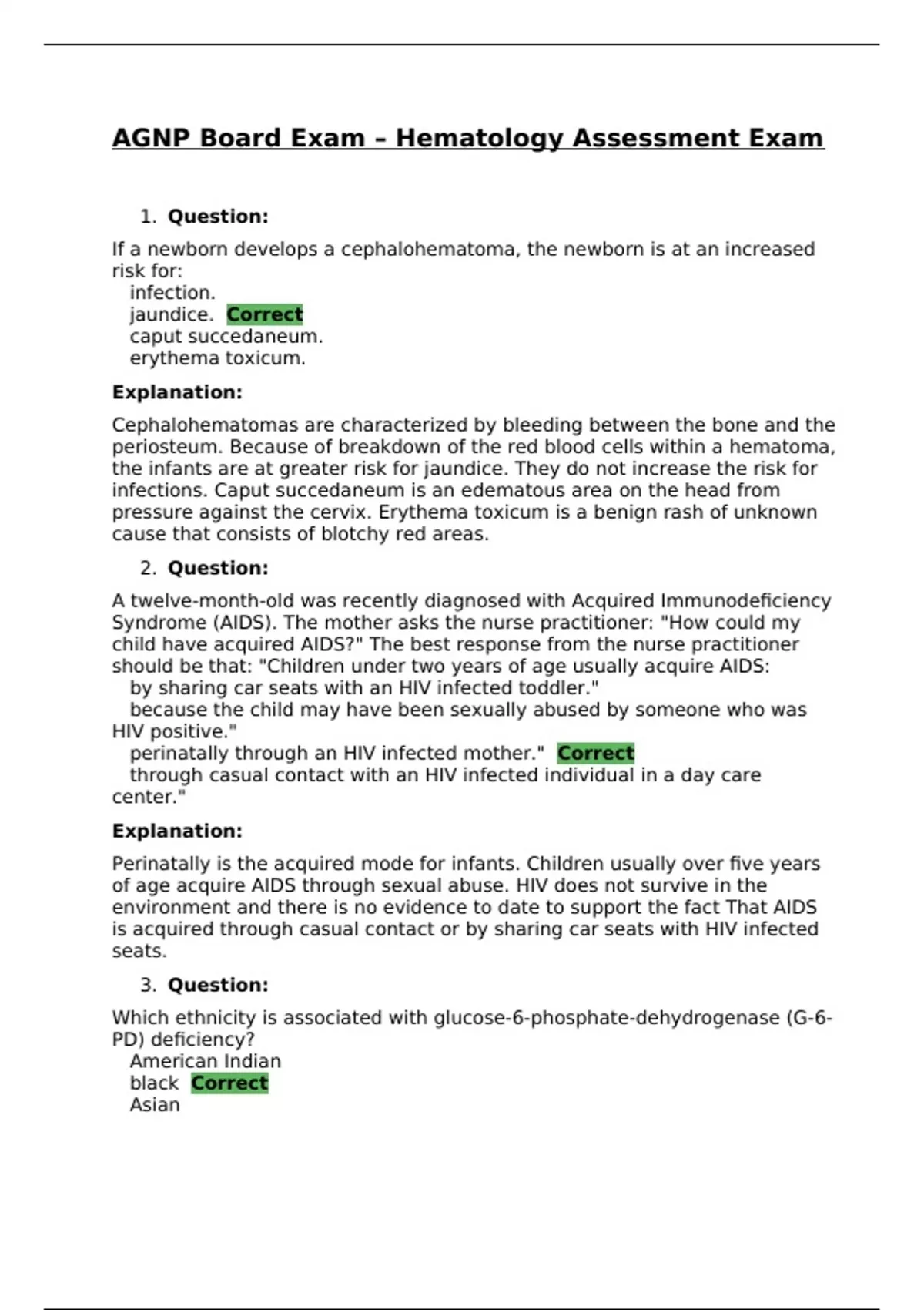 AGNP BOARD EXAM HEMATOLOGY ASSESSMENT CORRECTLY ANSWERED /LATEST UPDATE VERSION/ GRADED A+