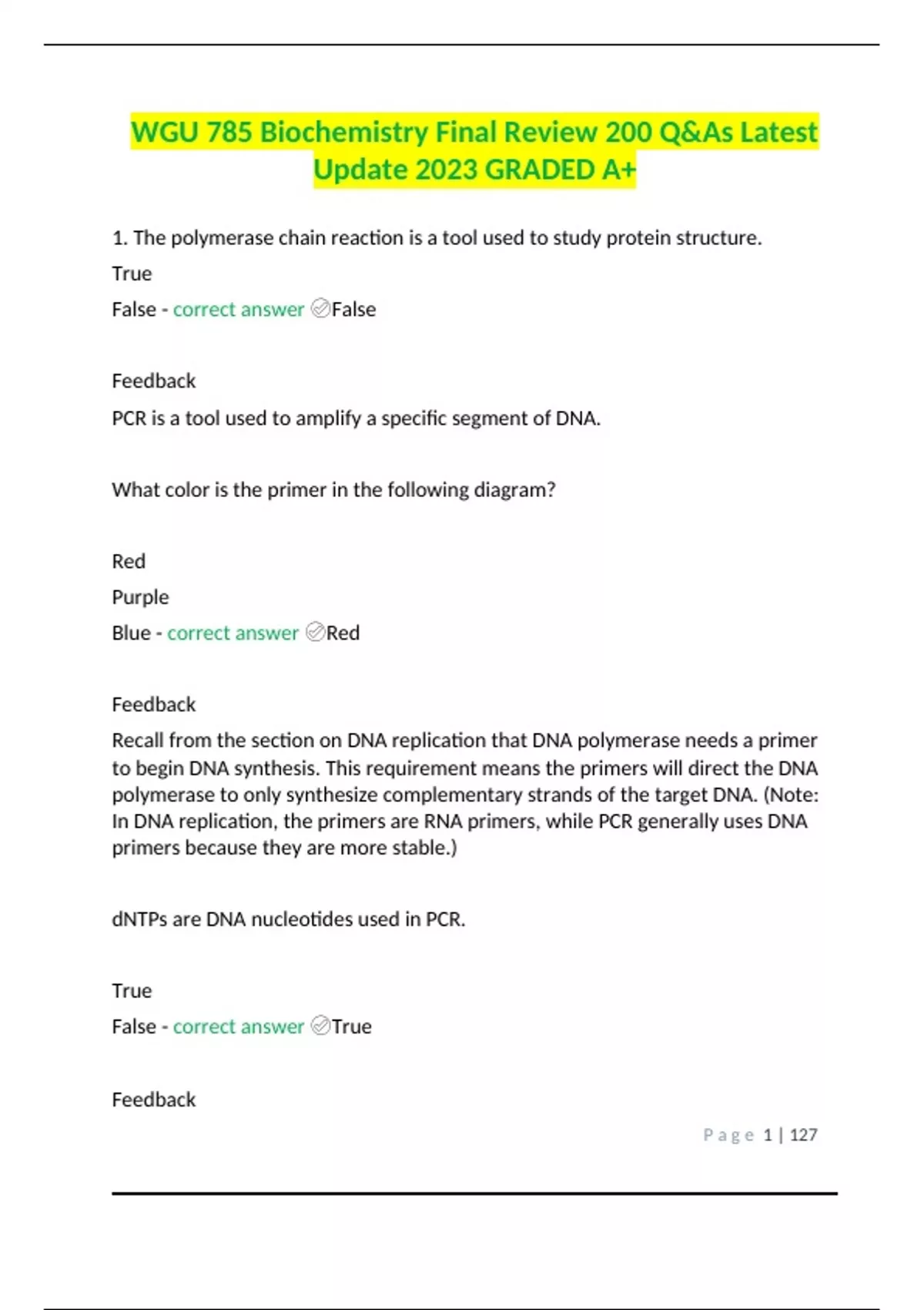 WGU 785 Biochemistry Final Review 200 Q&As Latest Update 2023 GRADED A+.
