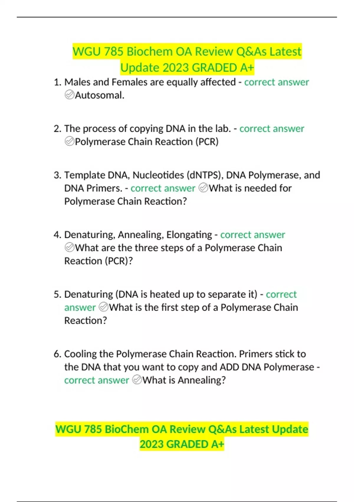 wgu 785 biochem oa review qas latest update 2023