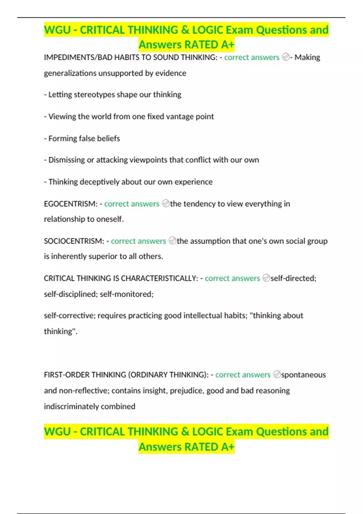 WGU - CRITICAL THINKING & LOGIC Exam Questions and Answers RATED A+WGU - CRITICAL THINKING & LOGIC Exam Questions and Answers RATED A+