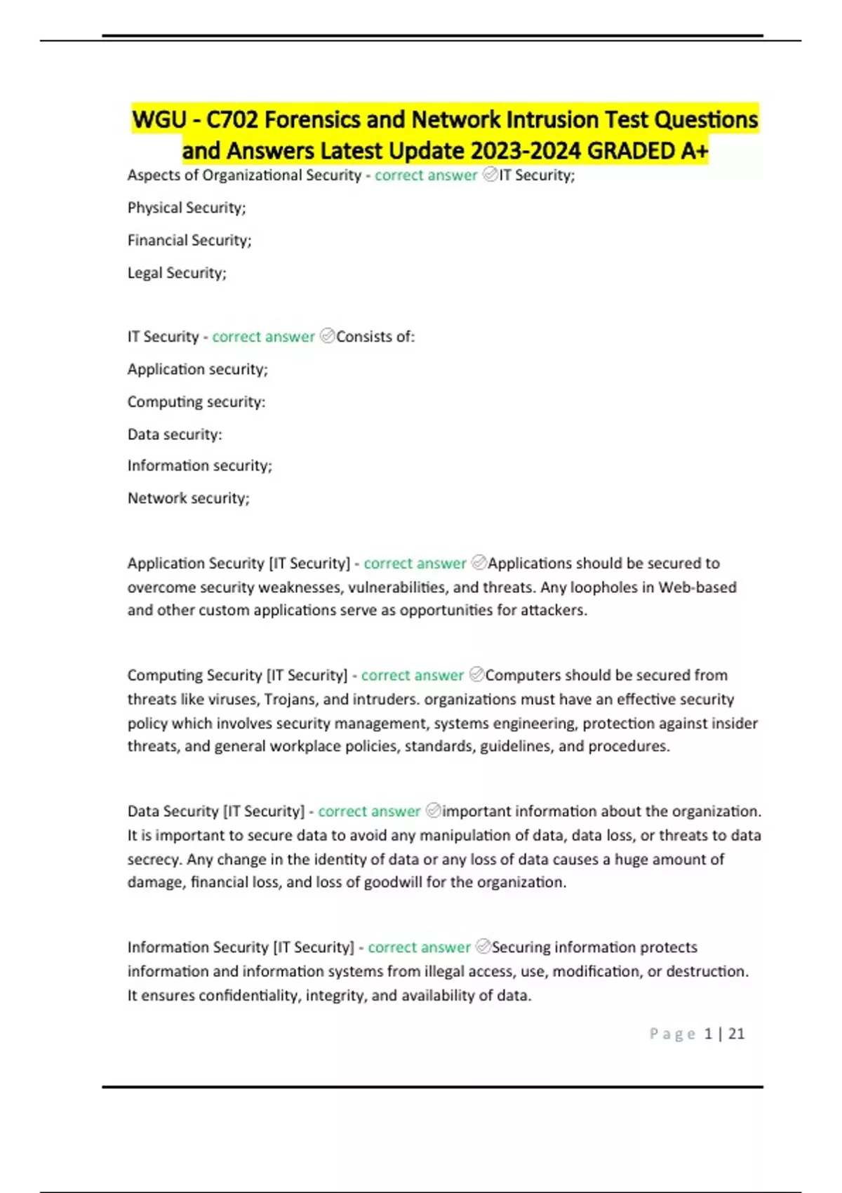 WGU - C702 Forensics and Network Intrusion Test Questions and Answers Latest Update GRADED A+.docx WGU - C702 Forensics and Network Intrusion Test Questions and Answers Latest Update GRADED A+.docx