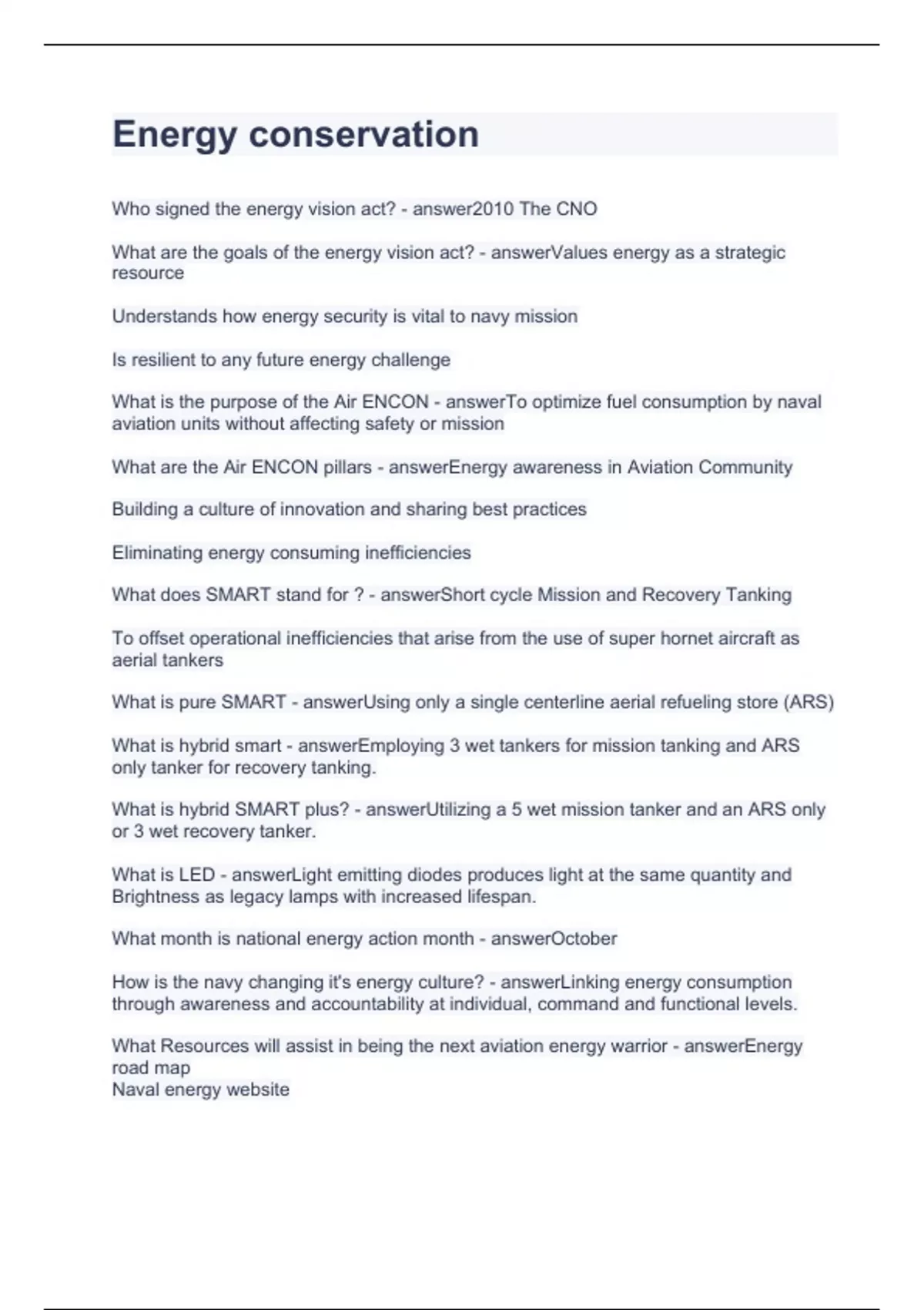 Understands how energy security is vital to navy mission