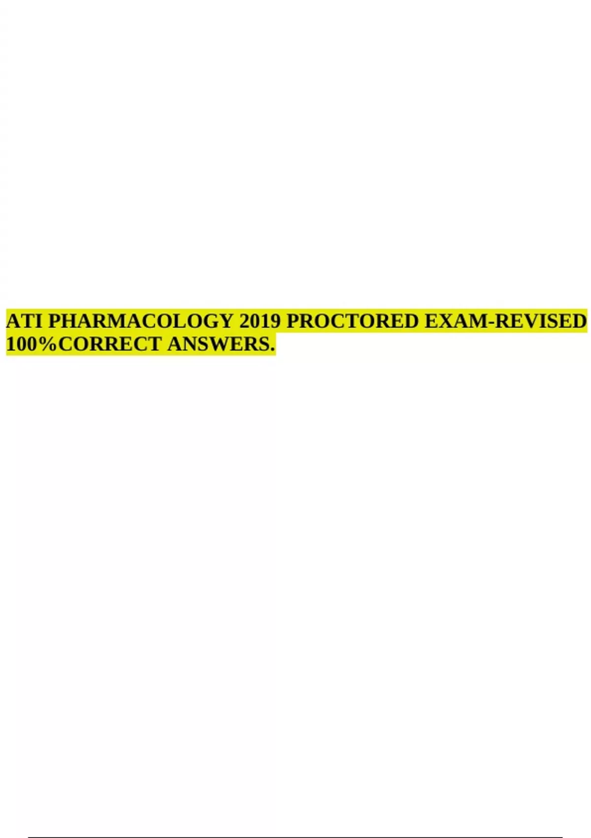 ATI PHARMACOLOGY 2019 PROCTORED EXAM-REVISED 100% CORRECT ANSWERS.