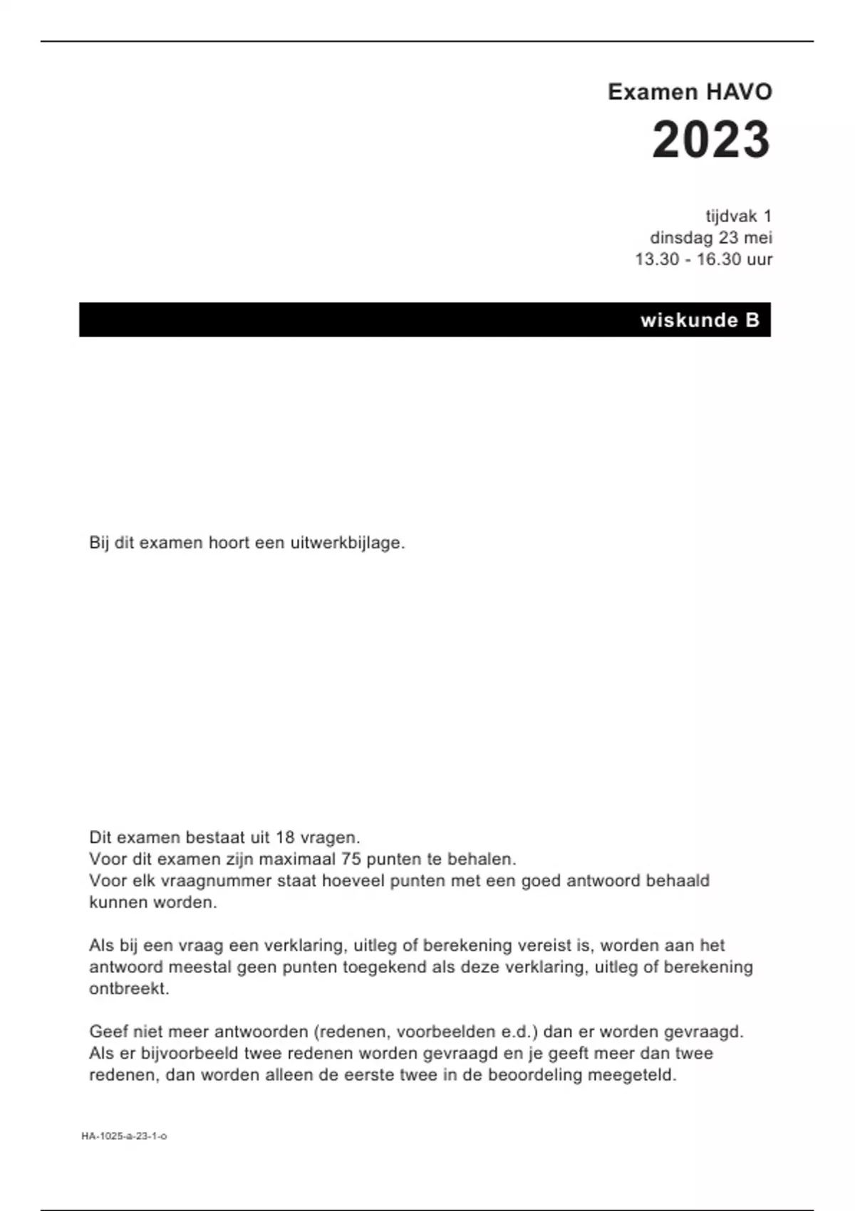 Voor dit examen zijn maximaal 75 punten te behalen.