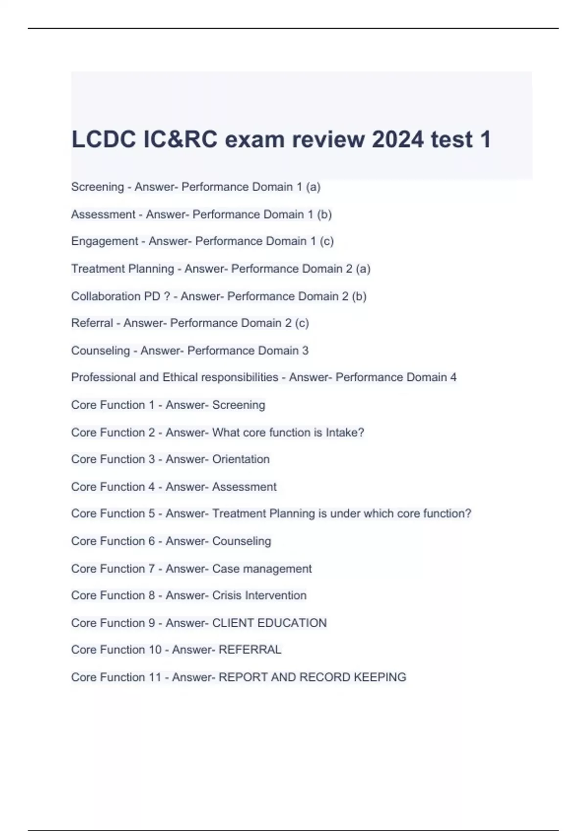 LCDC IC&RC exam review 2024 test 1-solved