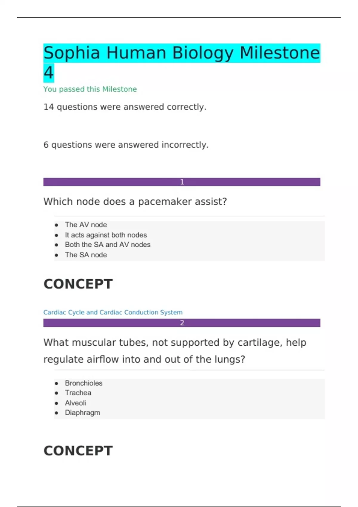 Summary SOPHIA HUMAN BIOLOGY MILESTONE 4 CORRECTLY ANSWERED /LATEST UPDATE VERSION/ GRADED A+