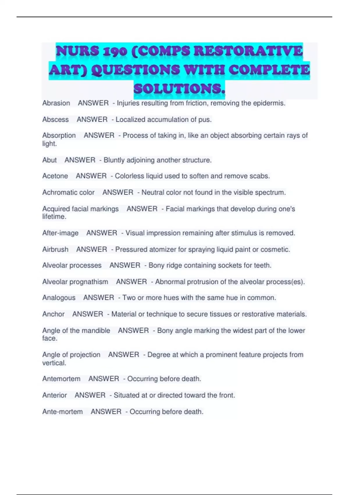 NURS 190 (COMPS RESTORATIVE ART) QUESTIONS WITH COMPLETE SOLUTIONS. NURS 190 (COMPS RESTORATIVE ART) QUESTIONS WITH COMPLETE SOLUTIONS. NURS 190 (COMPS RESTORATIVE ART) QUESTIONS WITH COMPLETE SOLUTIONS. NURS 190 (COMPS RESTORATIVE ART) QUESTIONS WITH COMPLETE SOLUTIONS. NURS 190 (COMPS RESTORATIVE ART) QUESTIONS WITH COMPLETE SOLUTIONS. NURS 190 (COMPS RESTORATIVE ART) QUESTIONS WITH COMPLETE SOLUTIONS. NURS 190 (COMPS RESTORATIVE ART) QUESTIONS WITH COMPLETE SOLUTIONS. NURS 190 (COMPS RESTORATIVE ART) QUESTIONS WITH COMPLETE SOLUTIONS. NURS 190 (COMPS RESTORATIVE ART) QUESTIONS WITH COMPLETE SOLUTIONS. NURS 190 (COMPS RESTORATIVE ART) QUESTIONS WITH COMPLETE SOLUTIONS. NURS 190 (COMPS RESTORATIVE ART) QUESTIONS WITH COMPLETE SOLUTIONS. NURS 190 (COMPS RESTORATIVE ART) QUESTIONS WITH COMPLETE SOLUTIONS. NURS 190 (COMPS RESTORATIVE ART) QUESTIONS WITH COMPLETE SOLUTIONS. NURS 190 (COMPS RESTORATIVE ART) QUESTIONS WITH COMPLETE SOLUTIONS. NURS 190 (COMPS RESTORATIVE ART) QUESTIONS WITH COMPLETE SOLUTIONS. NURS 190 (COMPS RESTORATIVE ART) QUESTIONS WITH COMPLETE SOLUTIONS. NURS 190 (COMPS RESTORATIVE ART) QUESTIONS WITH COMPLETE SOLUTIONS. NURS 190 (COMPS RESTORATIVE ART) QUESTIONS WITH COMPLETE SOLUTIONS.