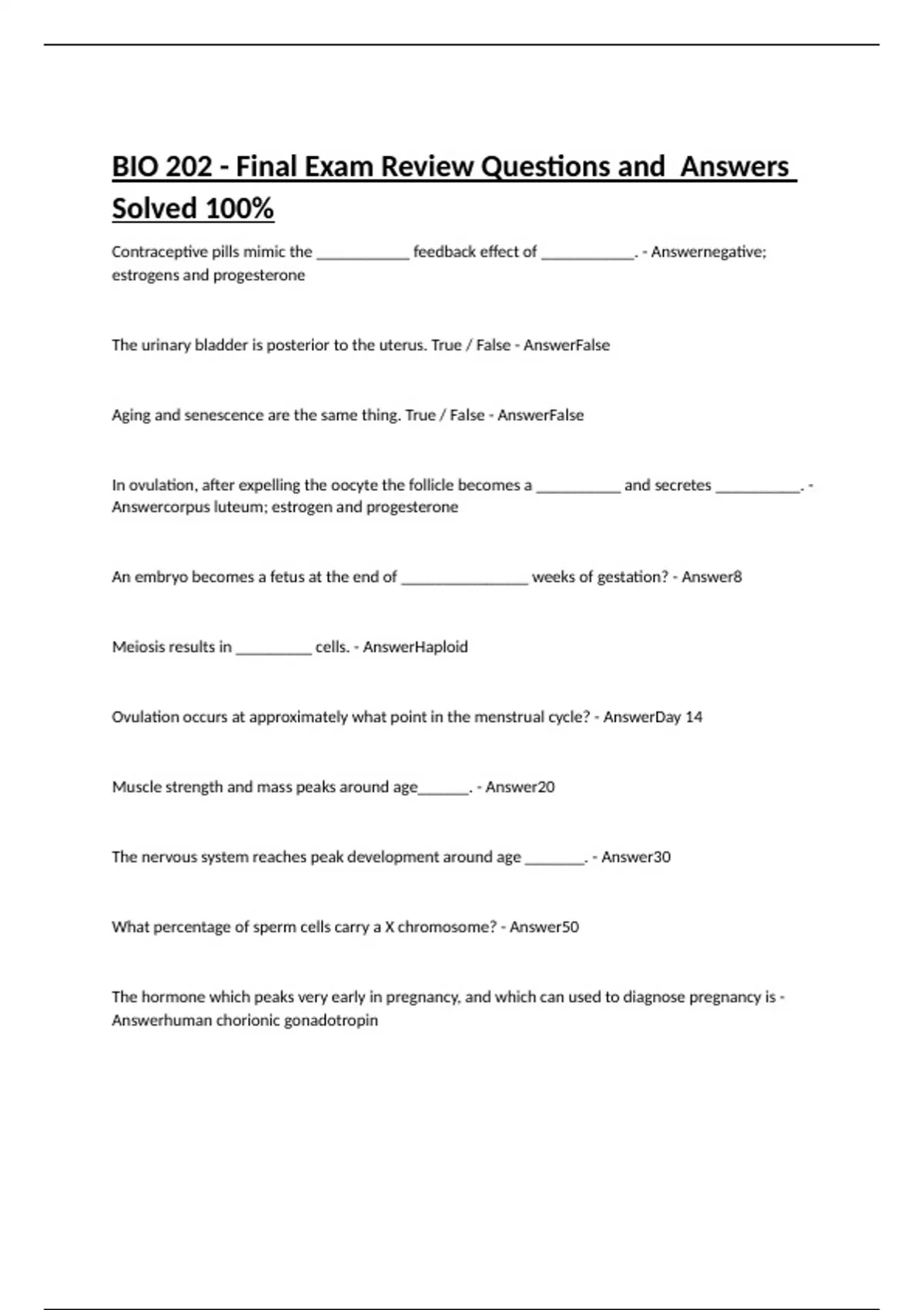 BIO 202 - Final Exam Review Questions and Answers Solved 100%