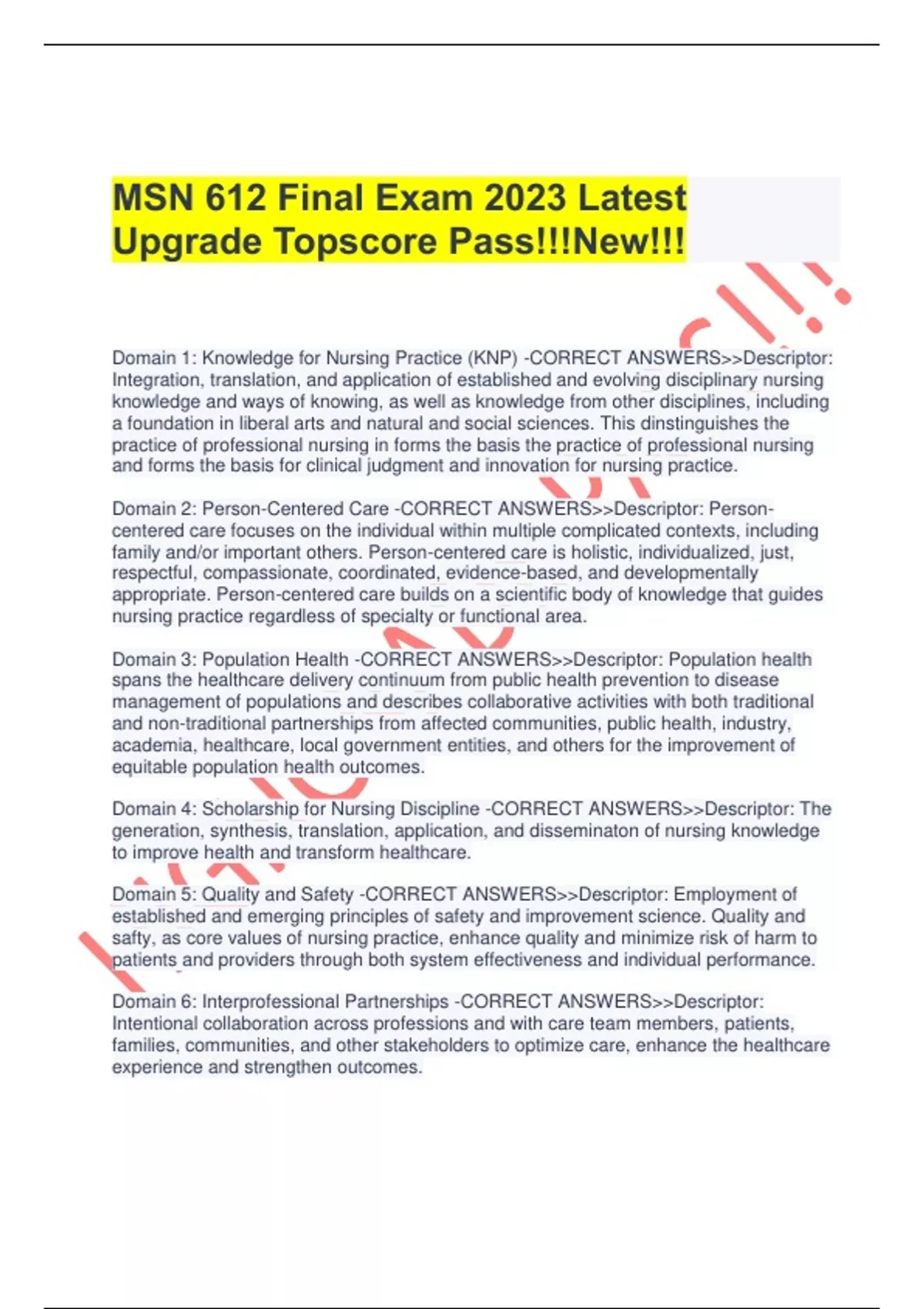 MSN 612 Final Exam 2023 Latest Upgrade Topscore Pass!!!New!!!