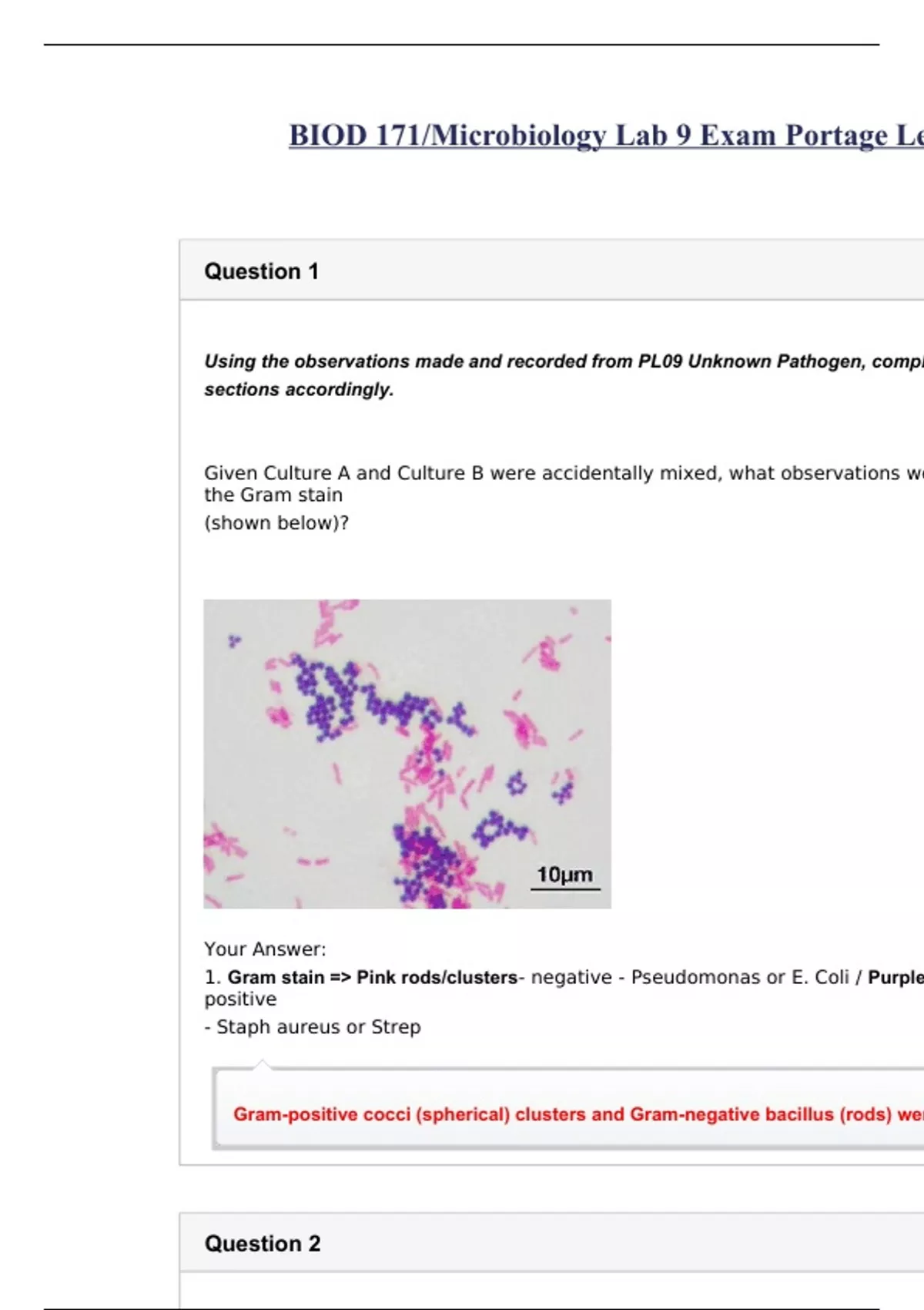 BIOD 171/Microbiology Lab 9 Exam Portage Learning