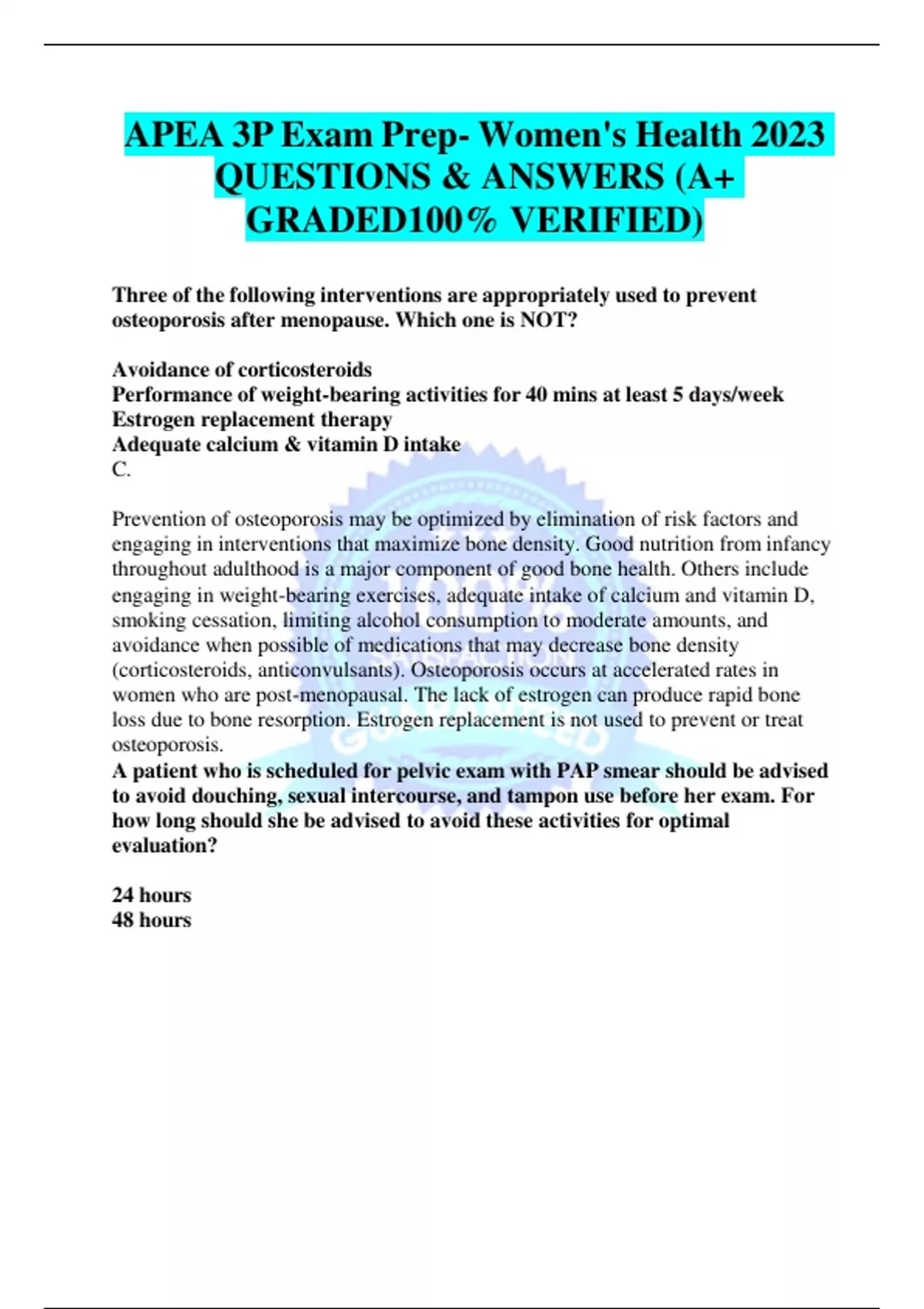 APEA 3P Practice Comprehensive Questions and Answers Graded A+. 2023/2024