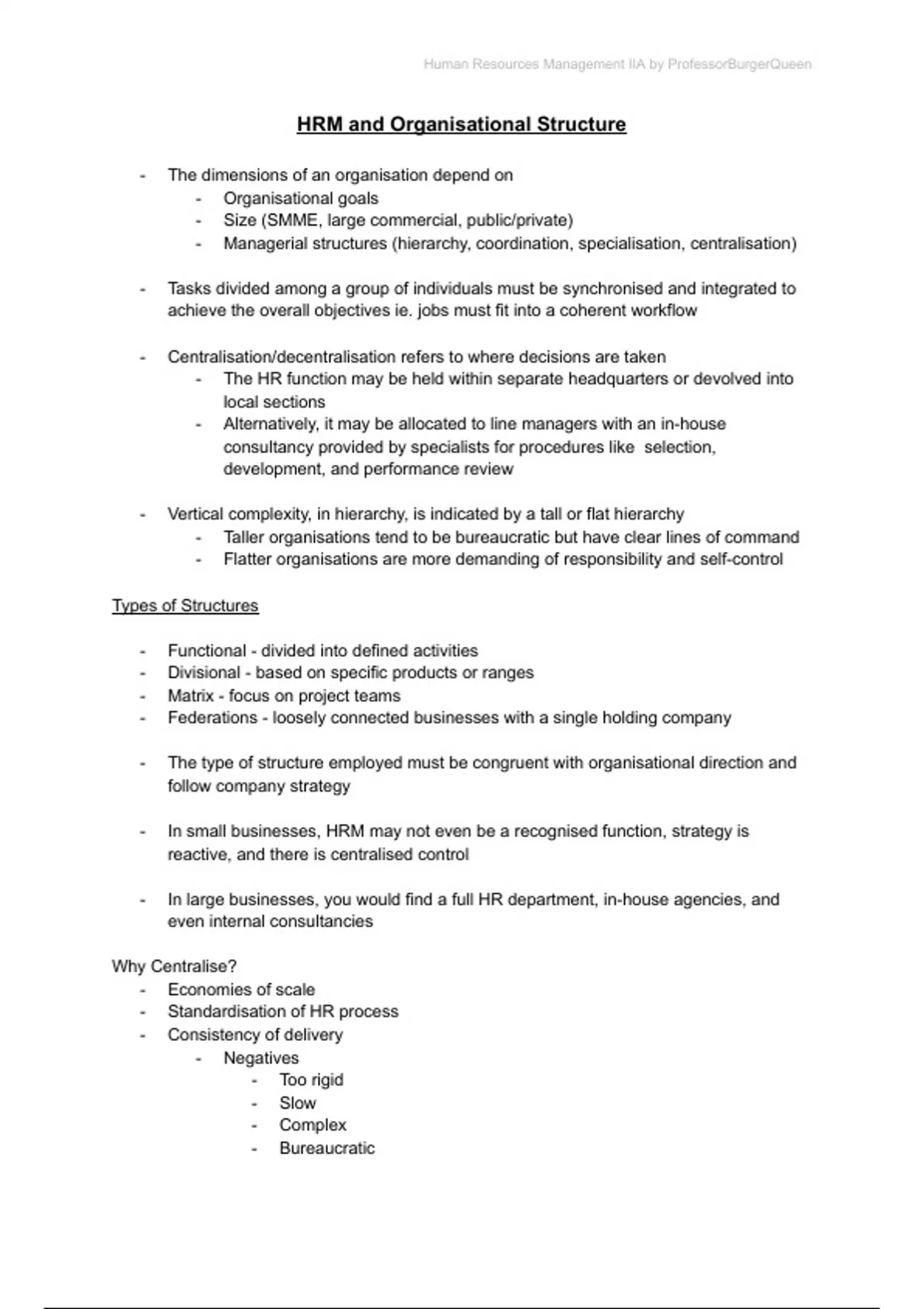 HRM and Organisational Structure