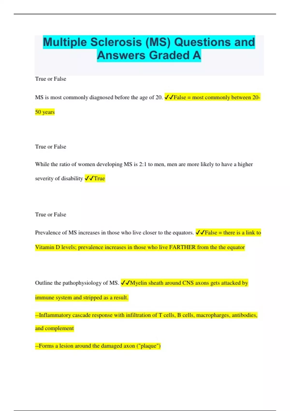 Multiple Sclerosis (MS) Questions and Answers Graded A