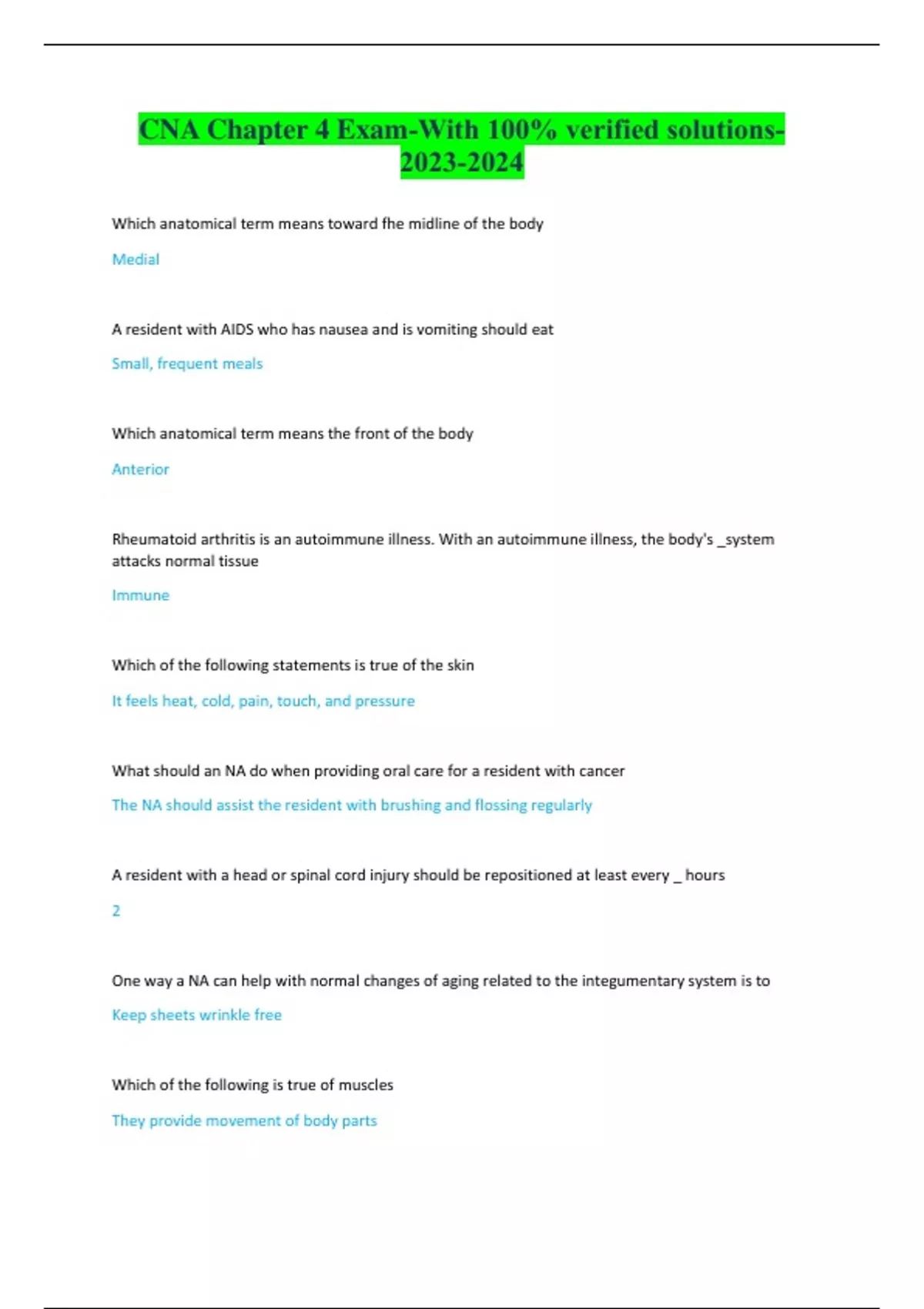 CNA Chapter 4 Exam-With 100% verified solutions