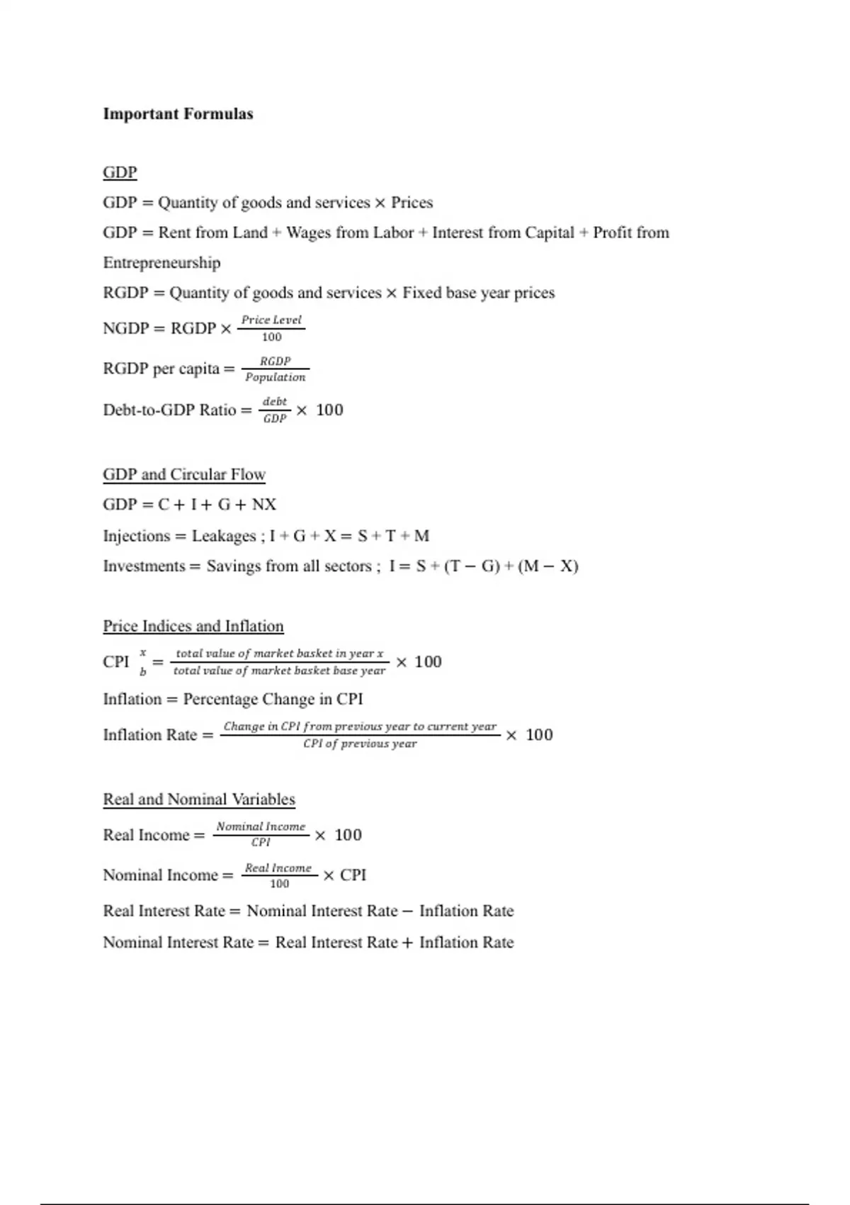Summary AP MACRO: FORMULAS