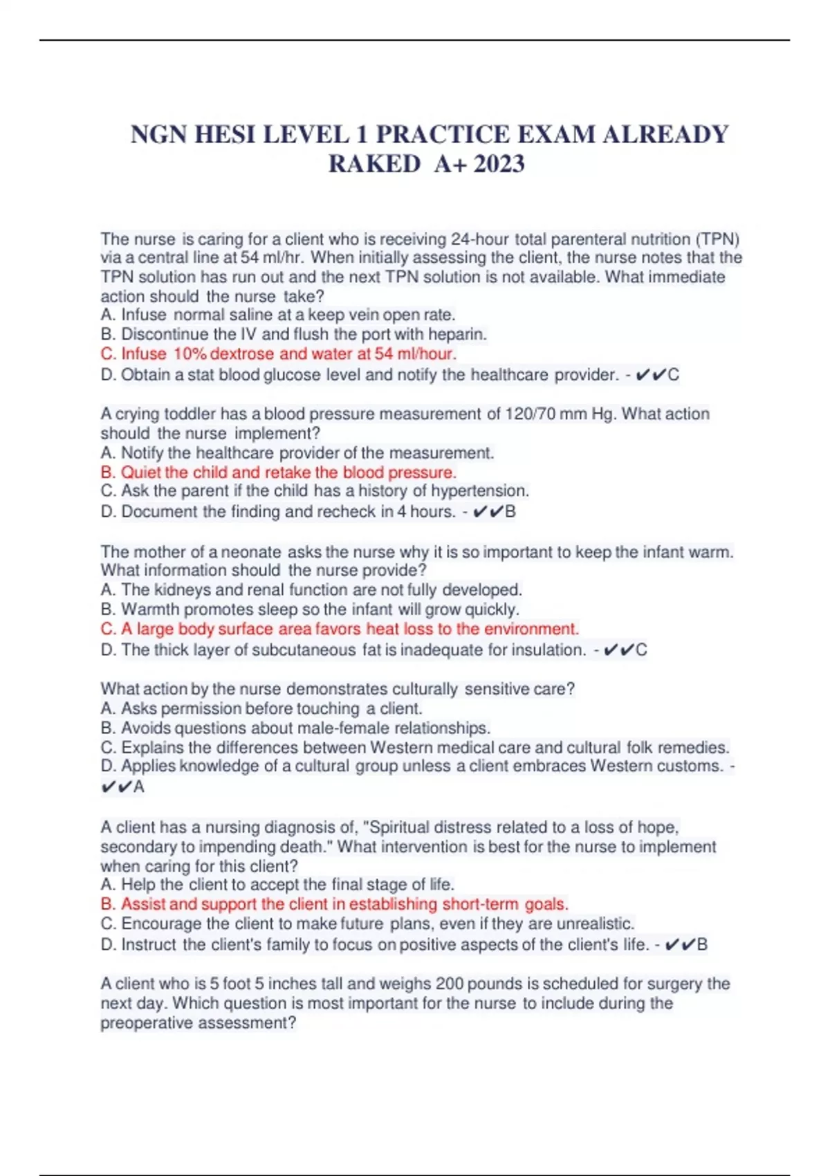 NGN HESI LEVEL 1 PRACTICE EXAM ALREADY RAKED A+ 2023