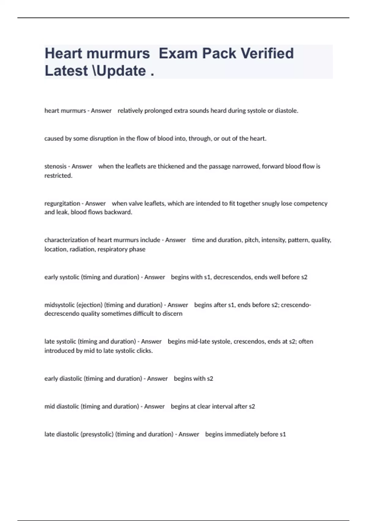 heart murmurs exam pack verified latest update