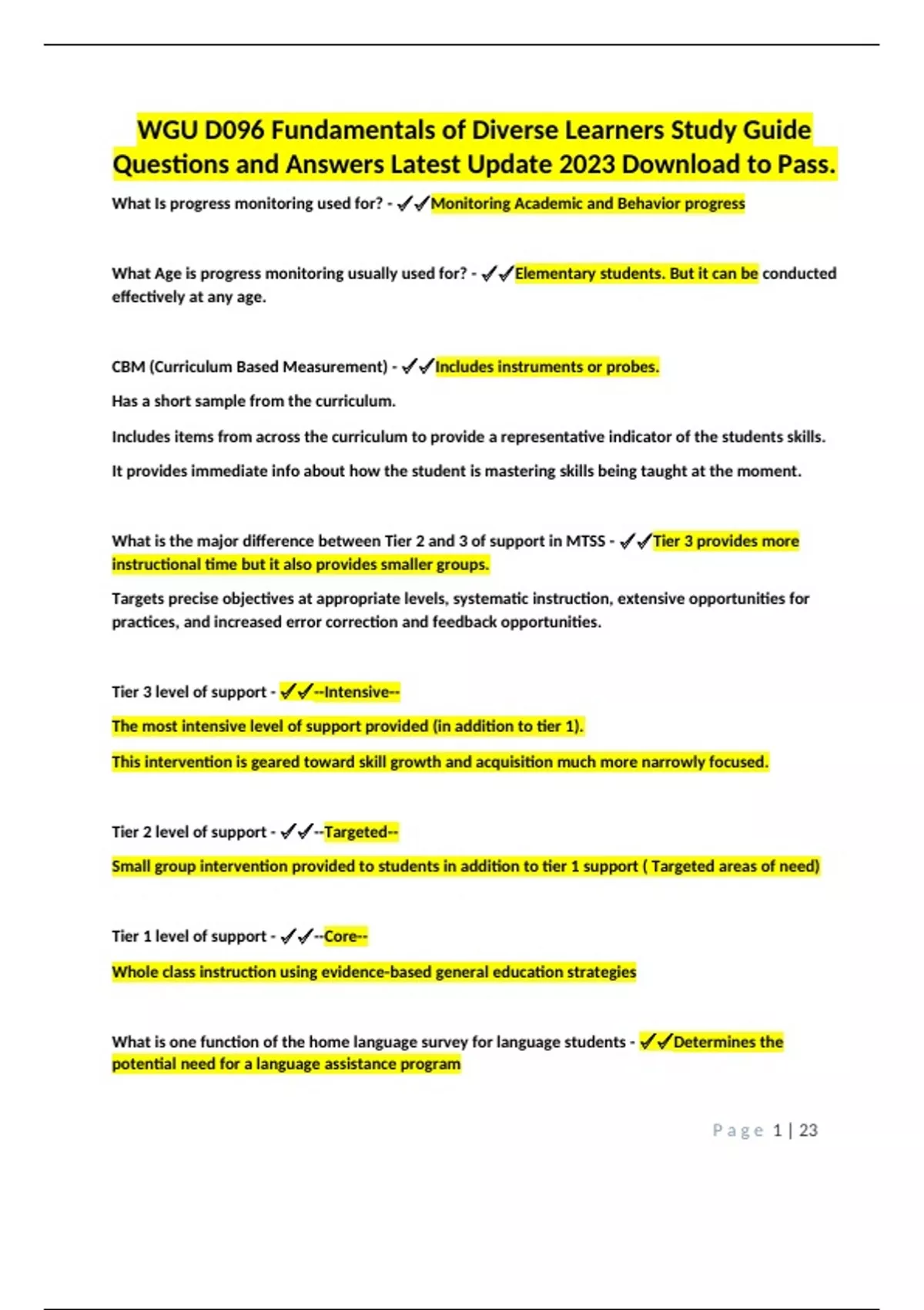 WGU D096 Fundamentals of Diverse Learners Study Guide Questions and Answers Latest Update 2023 Download to Pass..docx