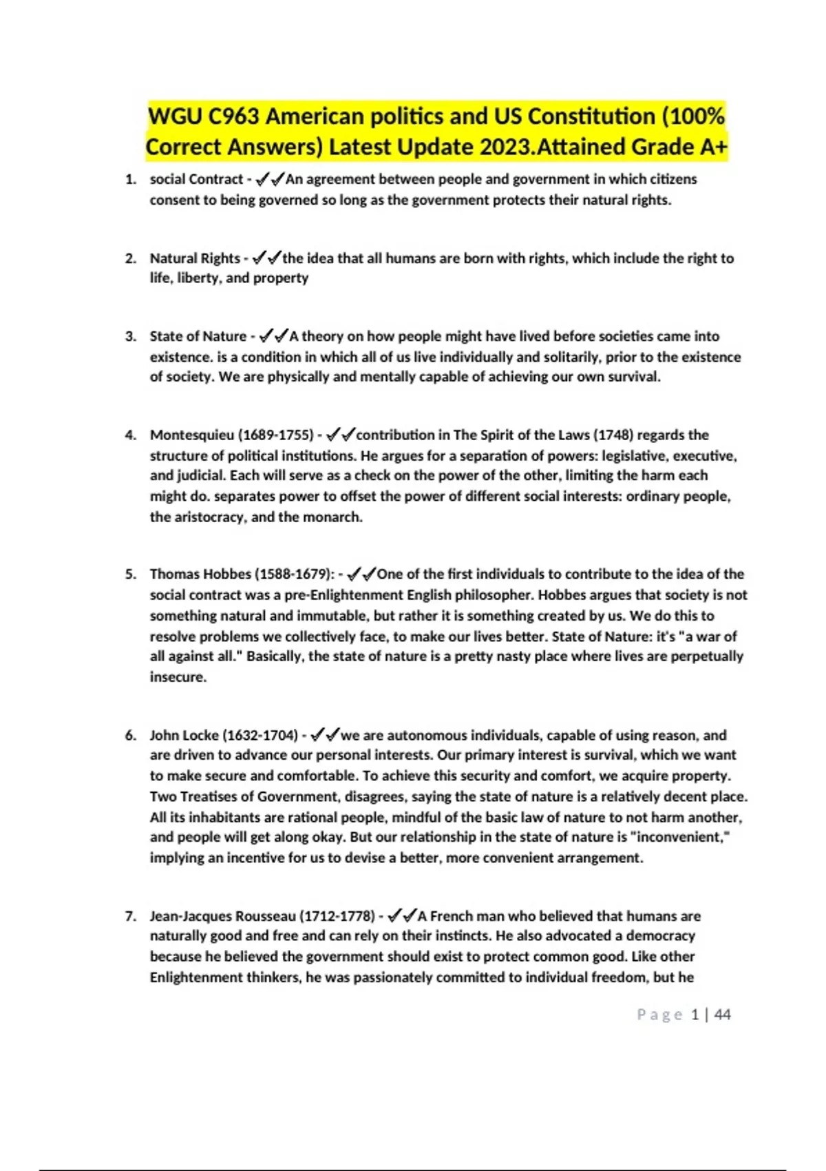 WGU C963 American politics and US Constitution (100% Correct Answers) Latest Update 2023.Attained Grade A+.docxWGU C963 American politics and US Constitution (100% Correct Answers) Latest Update 2023.Attained Grade A+.docx