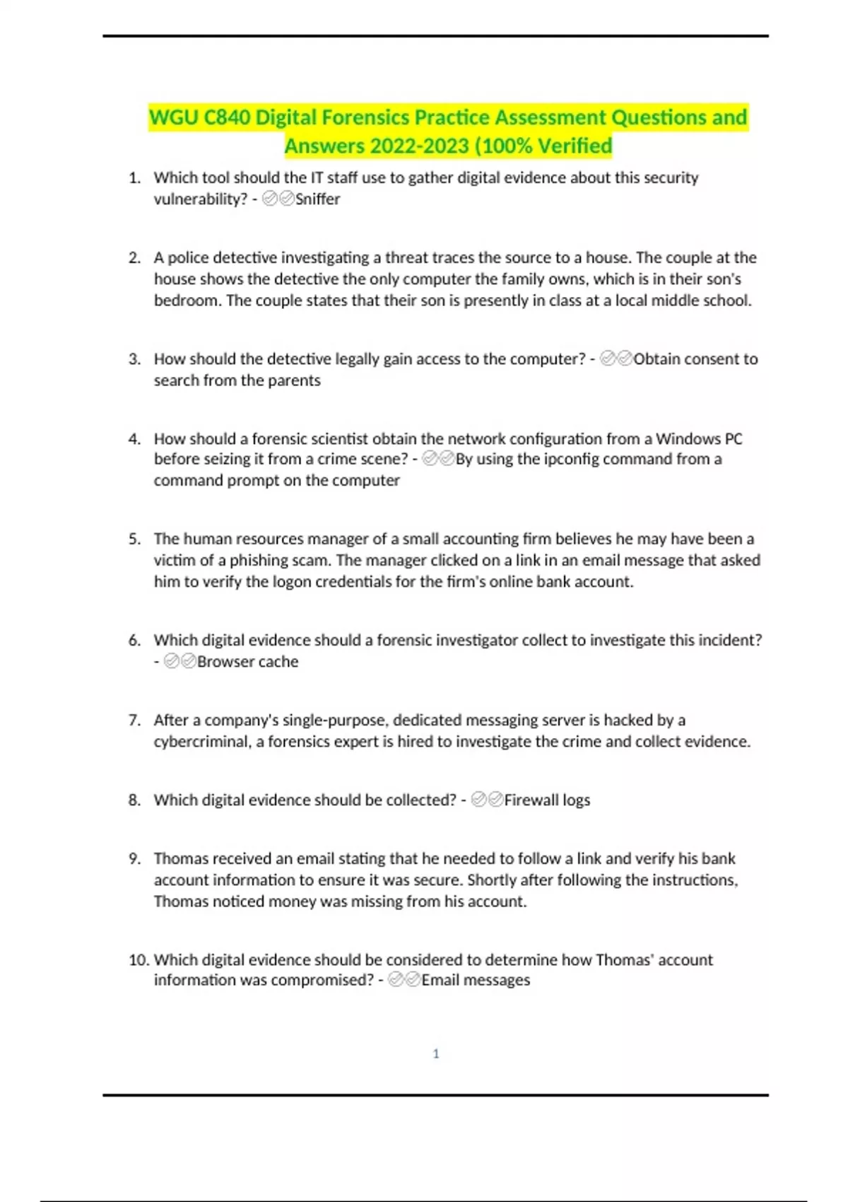 WGU C840 Digital Forensics Practice Assessment Questions and Answers (100% Verified.