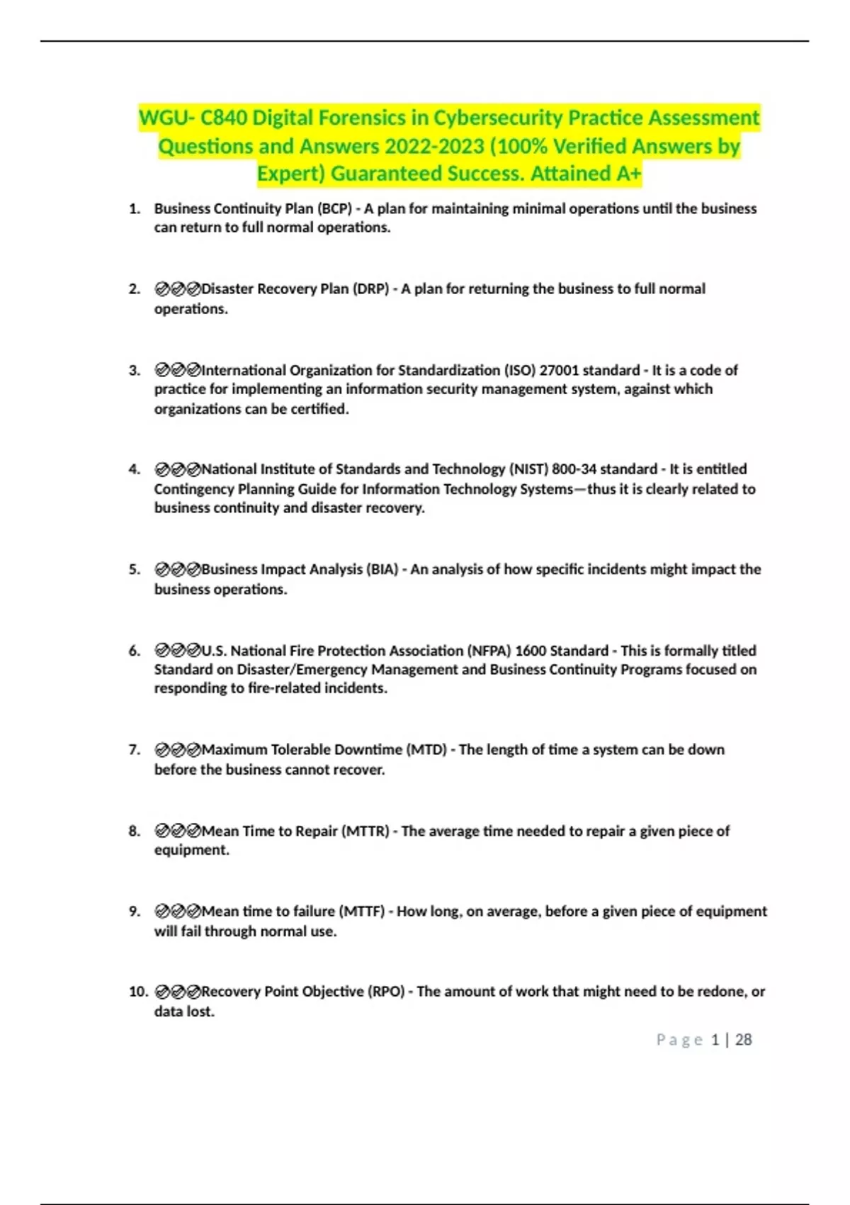 WGU- C840 Digital Forensics in Cybersecurity Practice Assessment Questions and Answers (100% Verified Answers by Expert) Guaranteed Success. Attained A+.