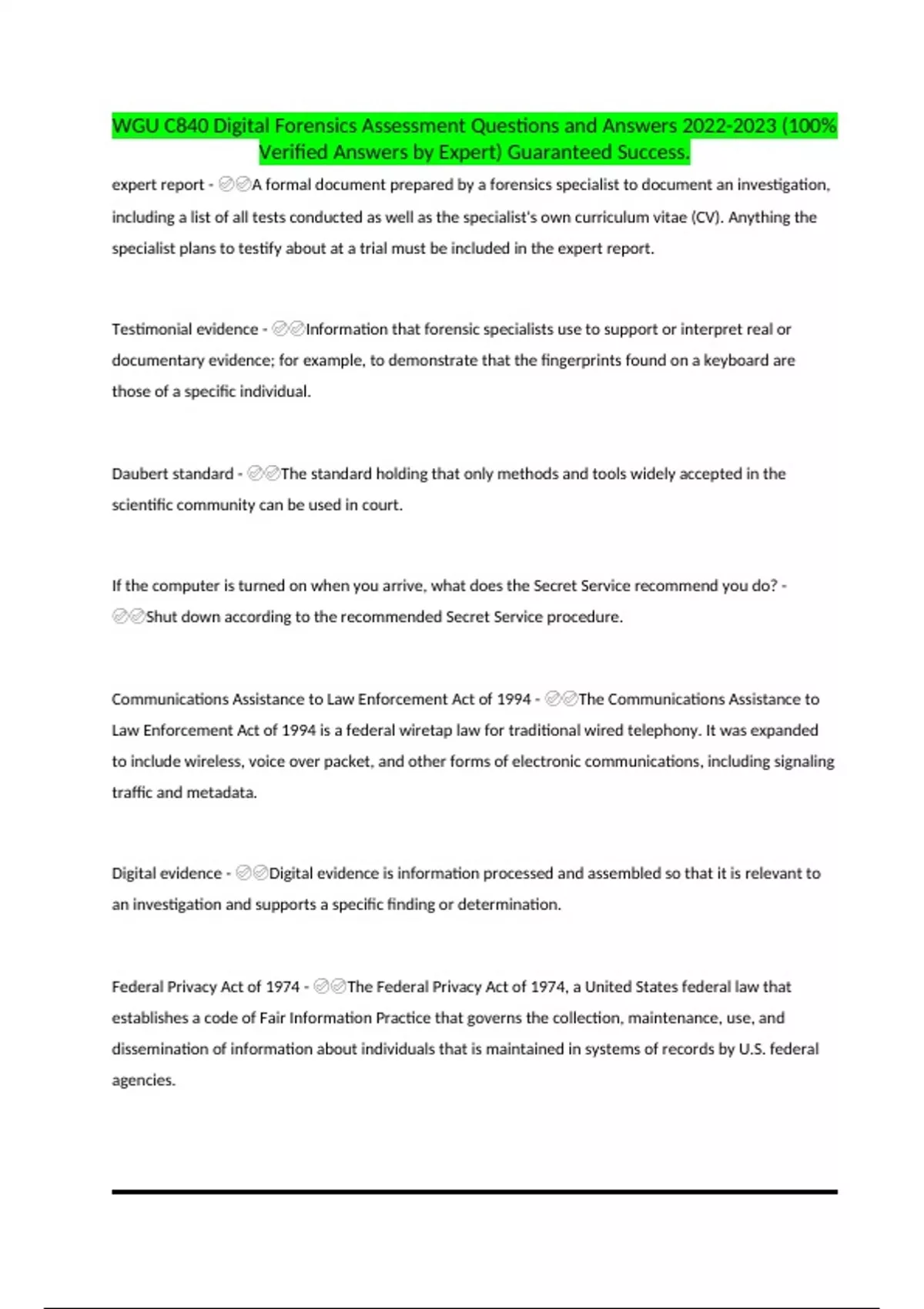 WGU C840 Digital Forensics Assessment Questions and Answers (100% Verified Answers by Expert) Guaranteed Success..docx