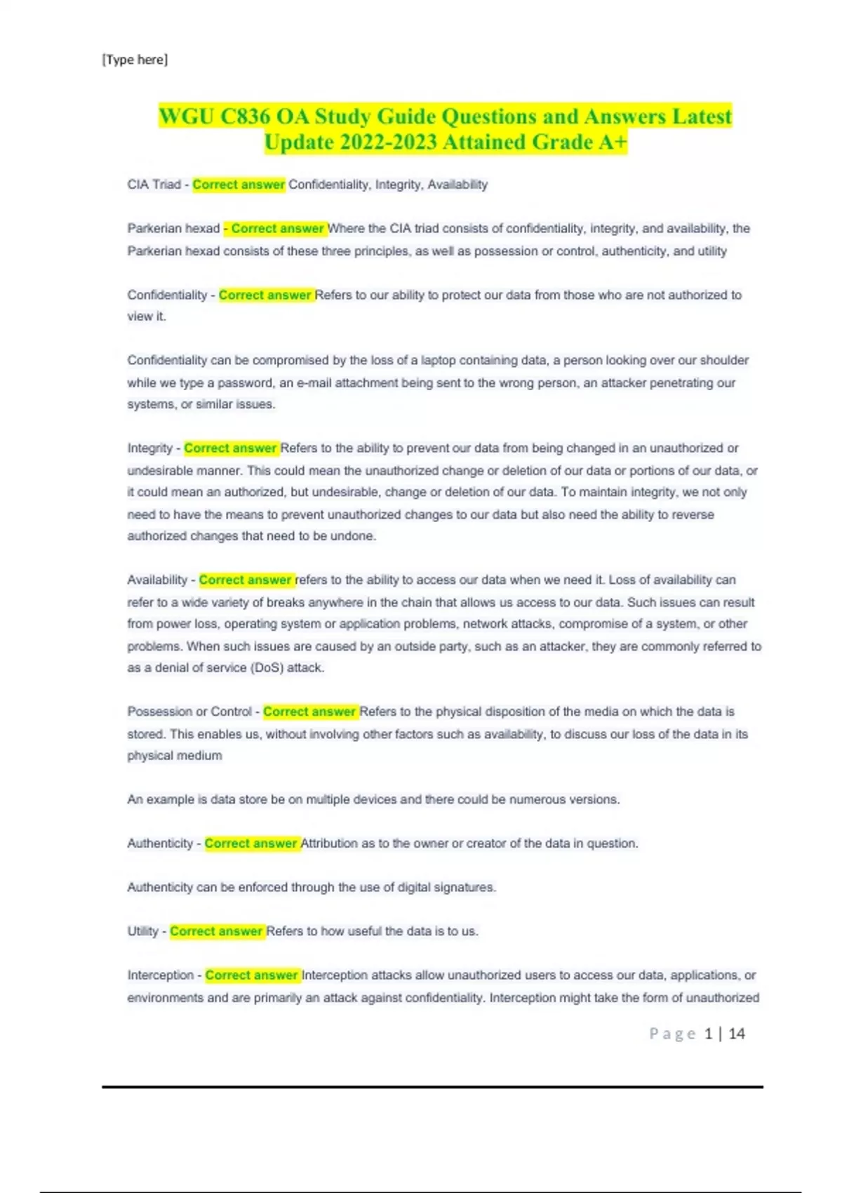 WGU C836 OA Study Guide Questions and Answers Latest Update Attained Grade A+.