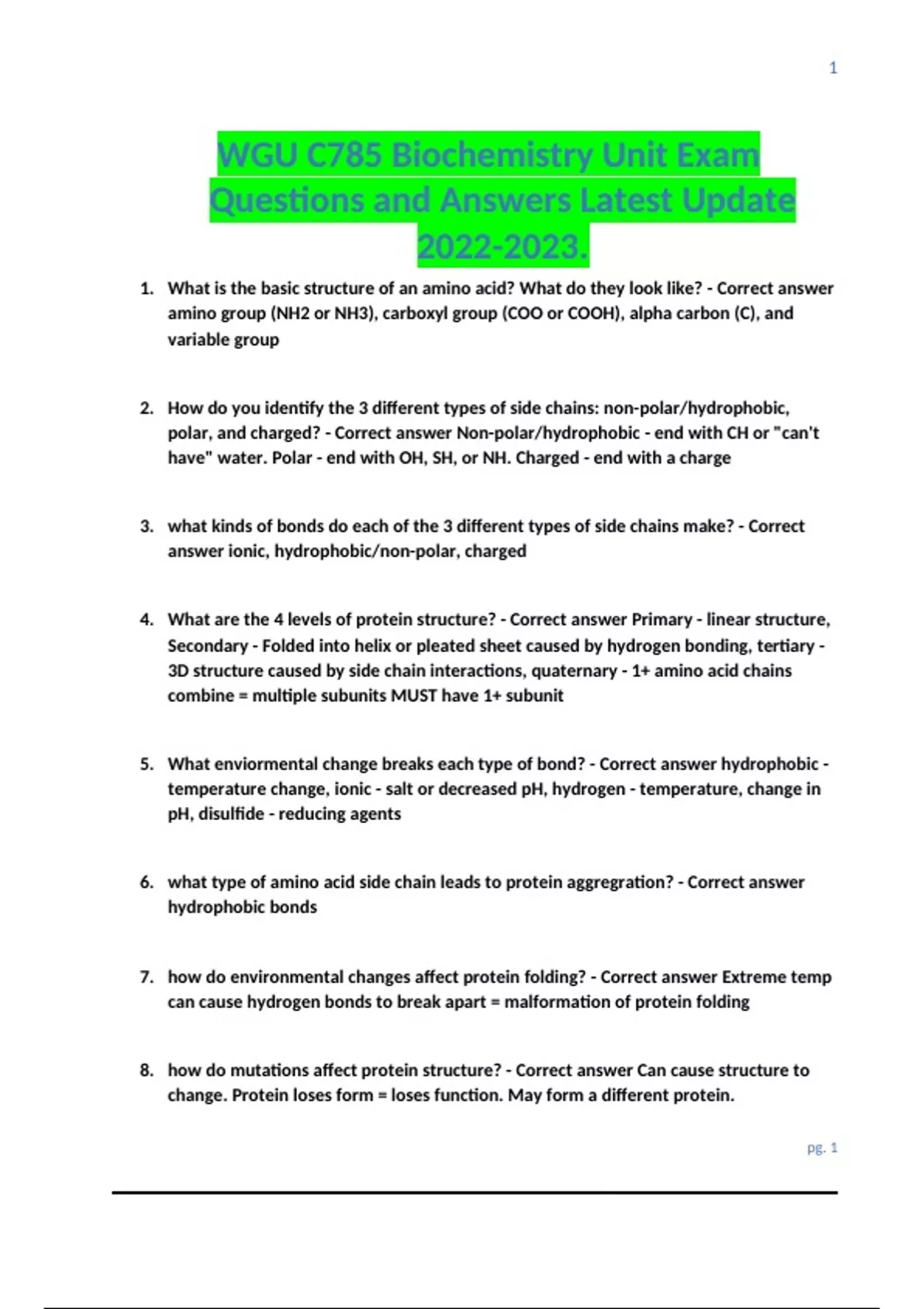 WGU C785 Biochemistry Unit Exam Questions And Answers Latest Update .WGU C785 Biochemistry Unit Exam Questions And Answers Latest Update .