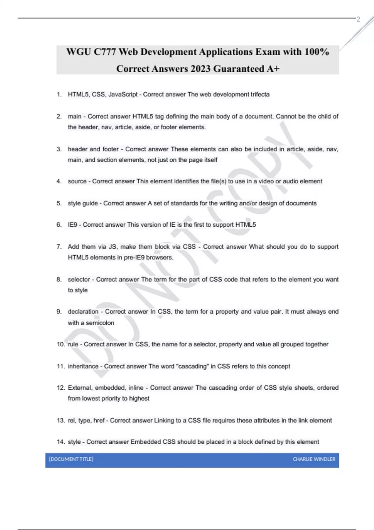 WGU C777 Web Development Applications Exam with 100% Correct Answers 2023 Guaranteed A+
