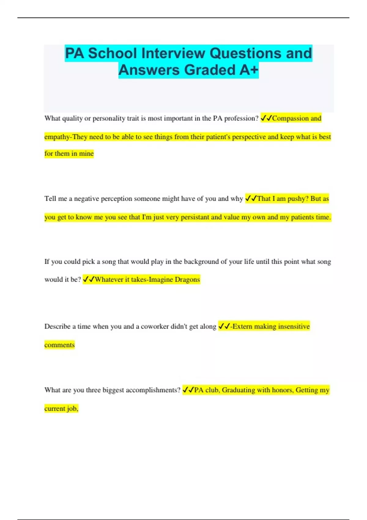 PA School Interview Questions and Answers Graded A+