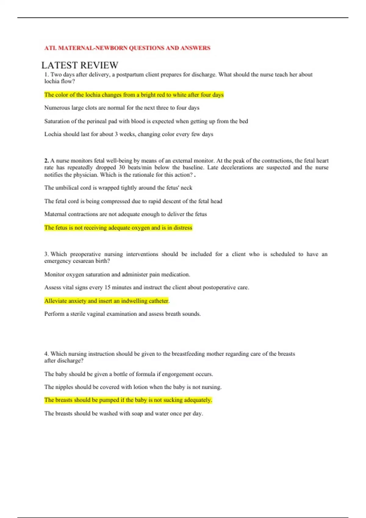 ATI. MATERNAL-NEWBORN QUESTIONS AND ANSWERS