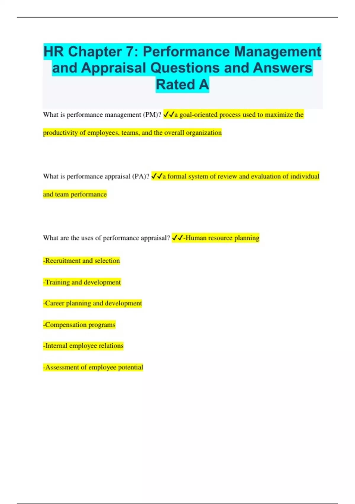 HR Chapter 7: Performance Management and Appraisal Questions and Answers Rated A