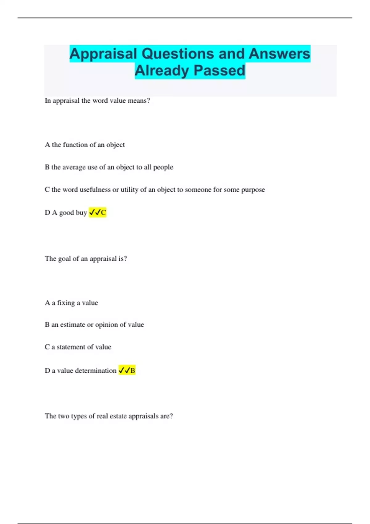 Appraisal Questions and Answers Already Passed