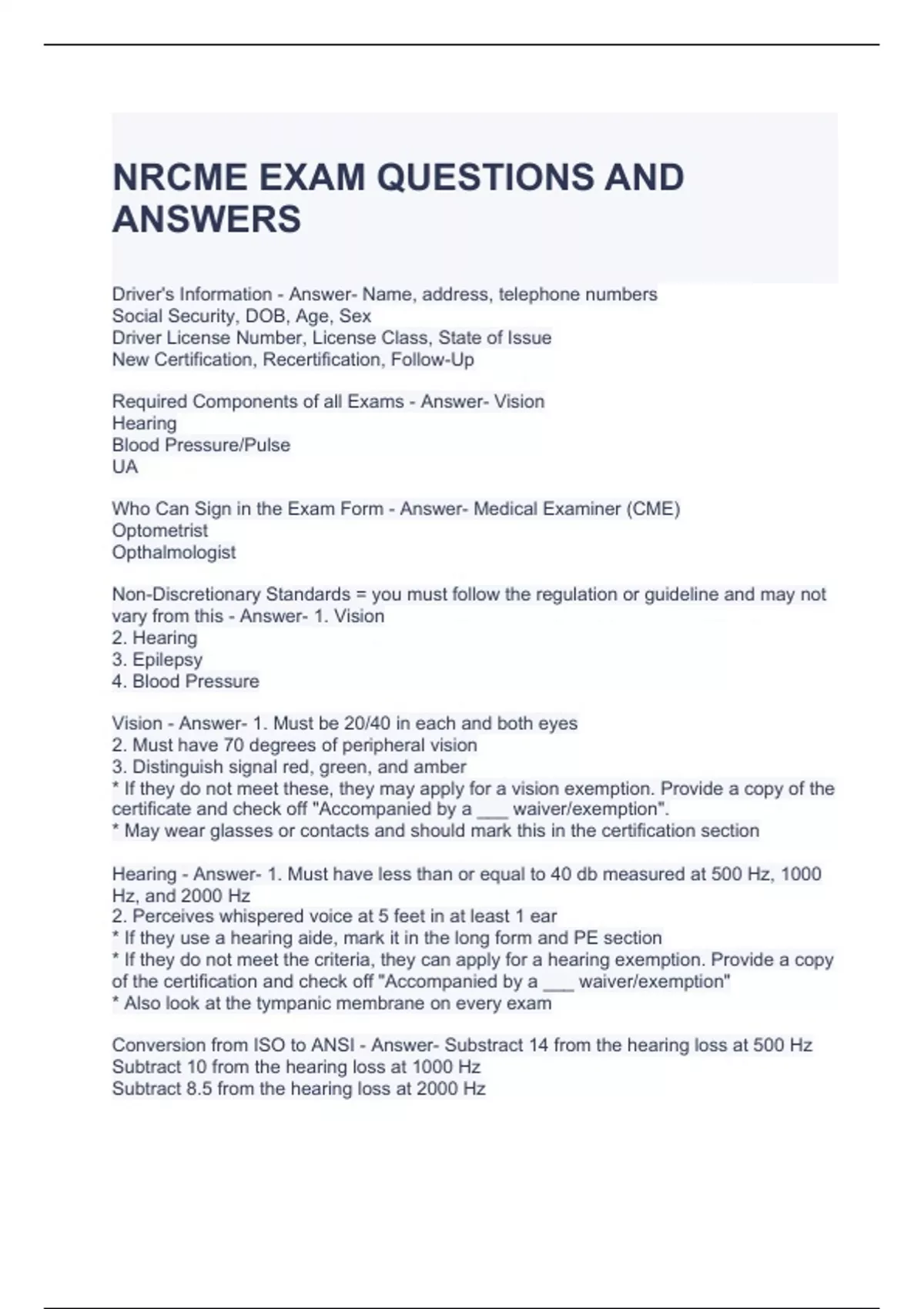 NRCME EXAM QUESTIONS AND ANSWERS