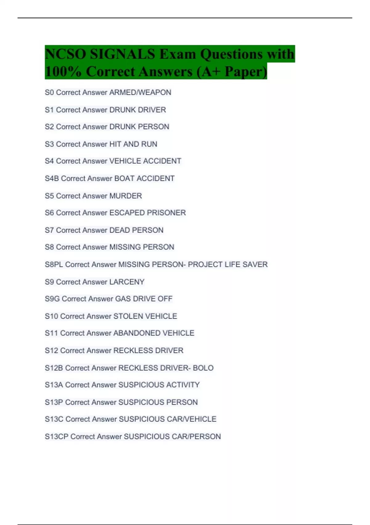 NCSO SIGNALS Exam Questions with 100% Correct Answers (A+ Paper)