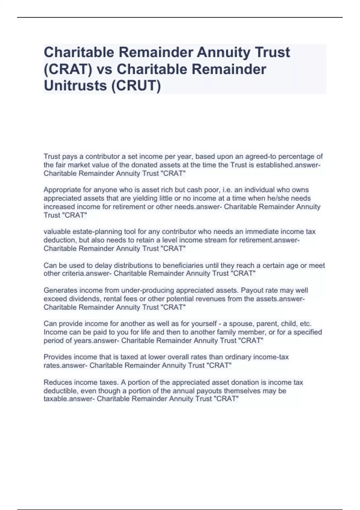 other criteria.answer- Charitable Remainder Annuity Trust "CRAT"