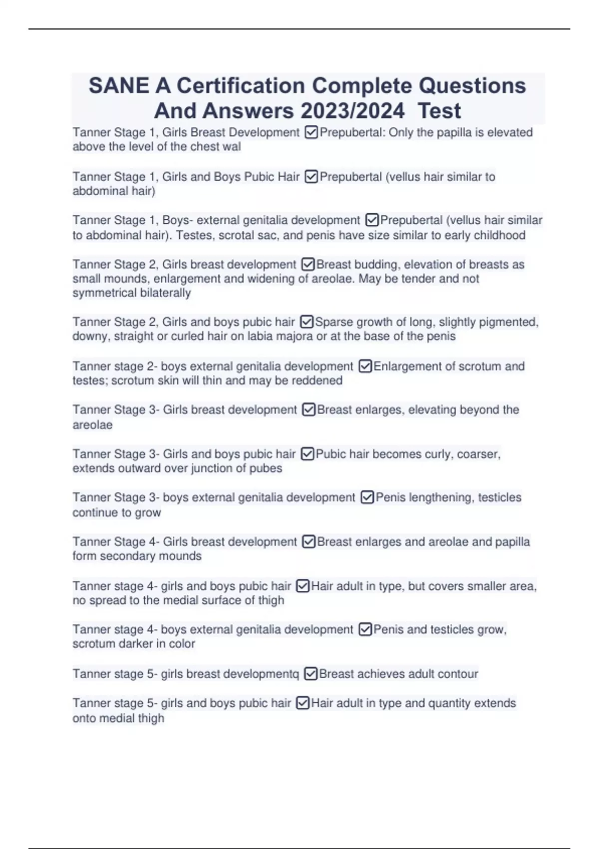 SANE A Certification Complete Questions And Answers 2023/2024 Test SANE A Certification Complete Questions And Answers 2023/2024 Test