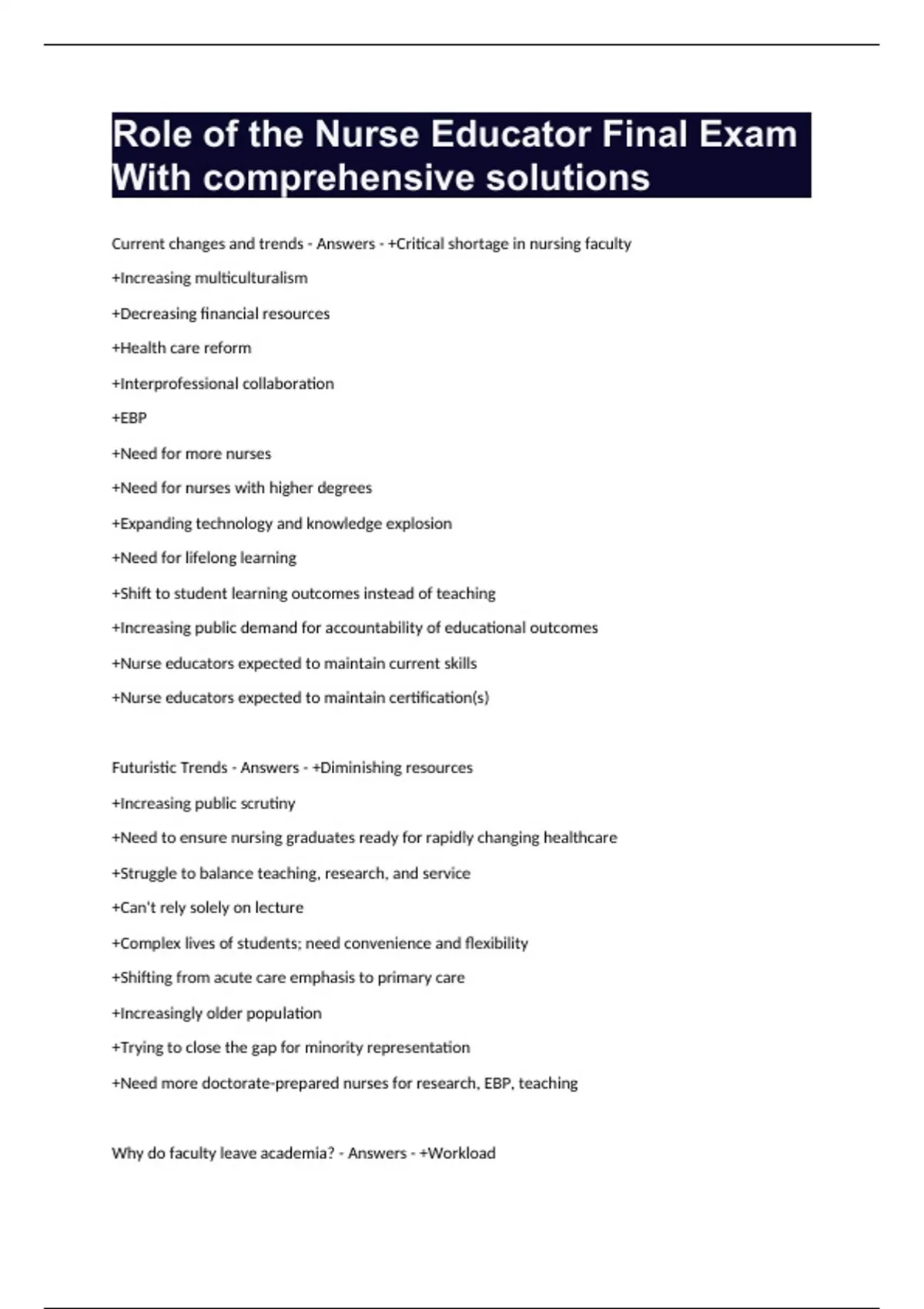 Role of the Nurse Educator Final Exam With comprehensive solutions