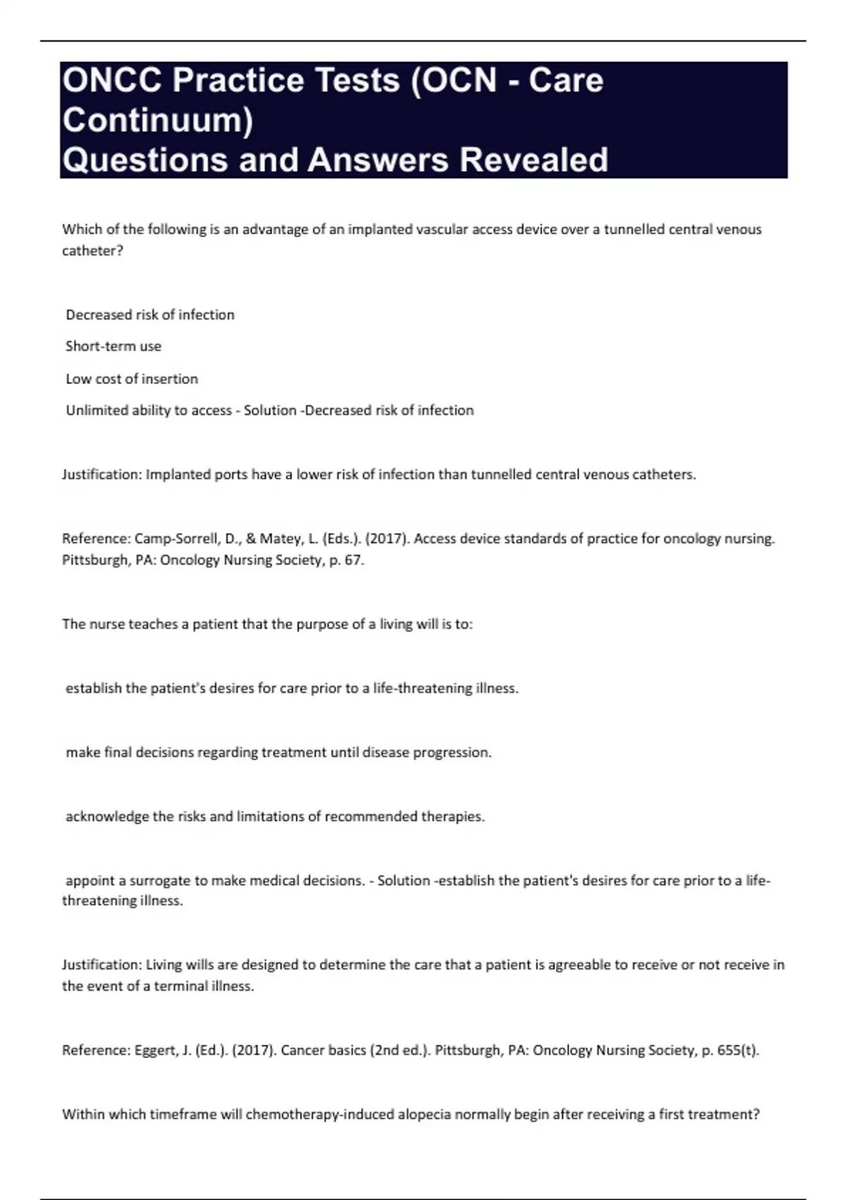 ONCC Practice Tests (OCN - Care Continuum) Questions and Answers Revealed