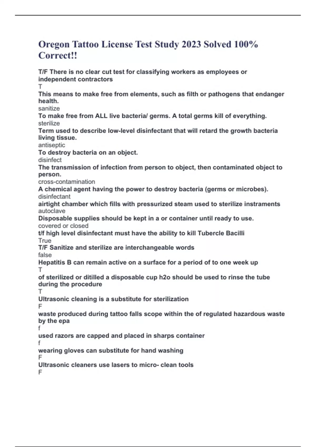 t/f high level disinfectant must have the ability to kill Tubercle Bacilli