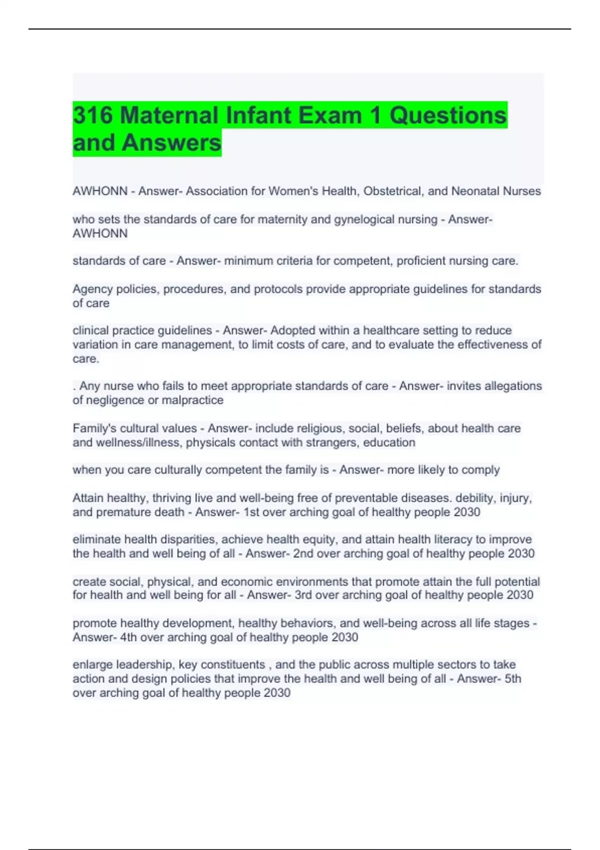 316 Maternal Infant Exam 1 Questions and Answers | Graded A