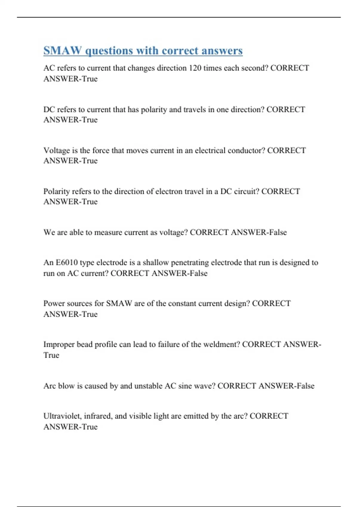 SMAW questions with correct answers