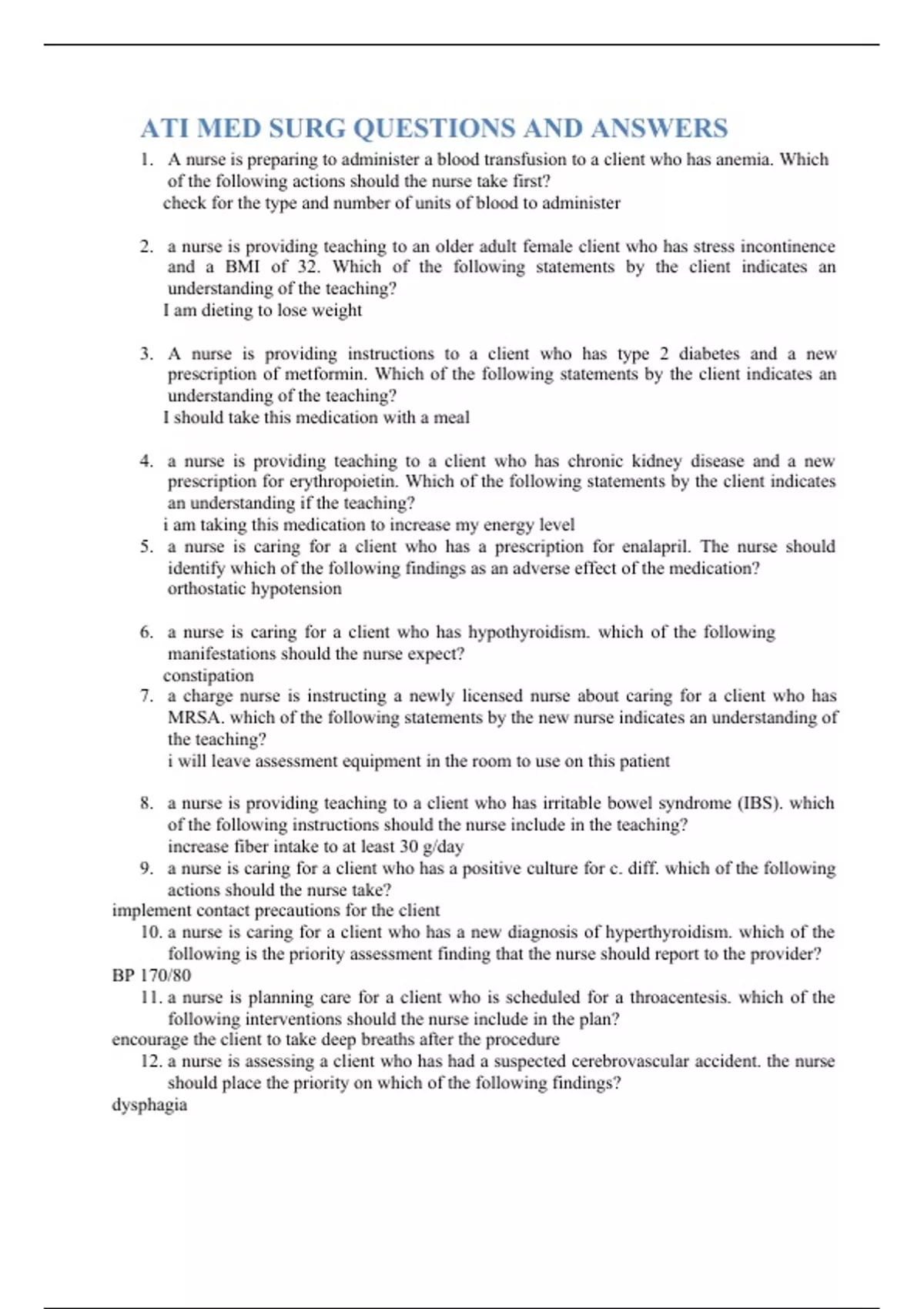 ati med surg questions and answers