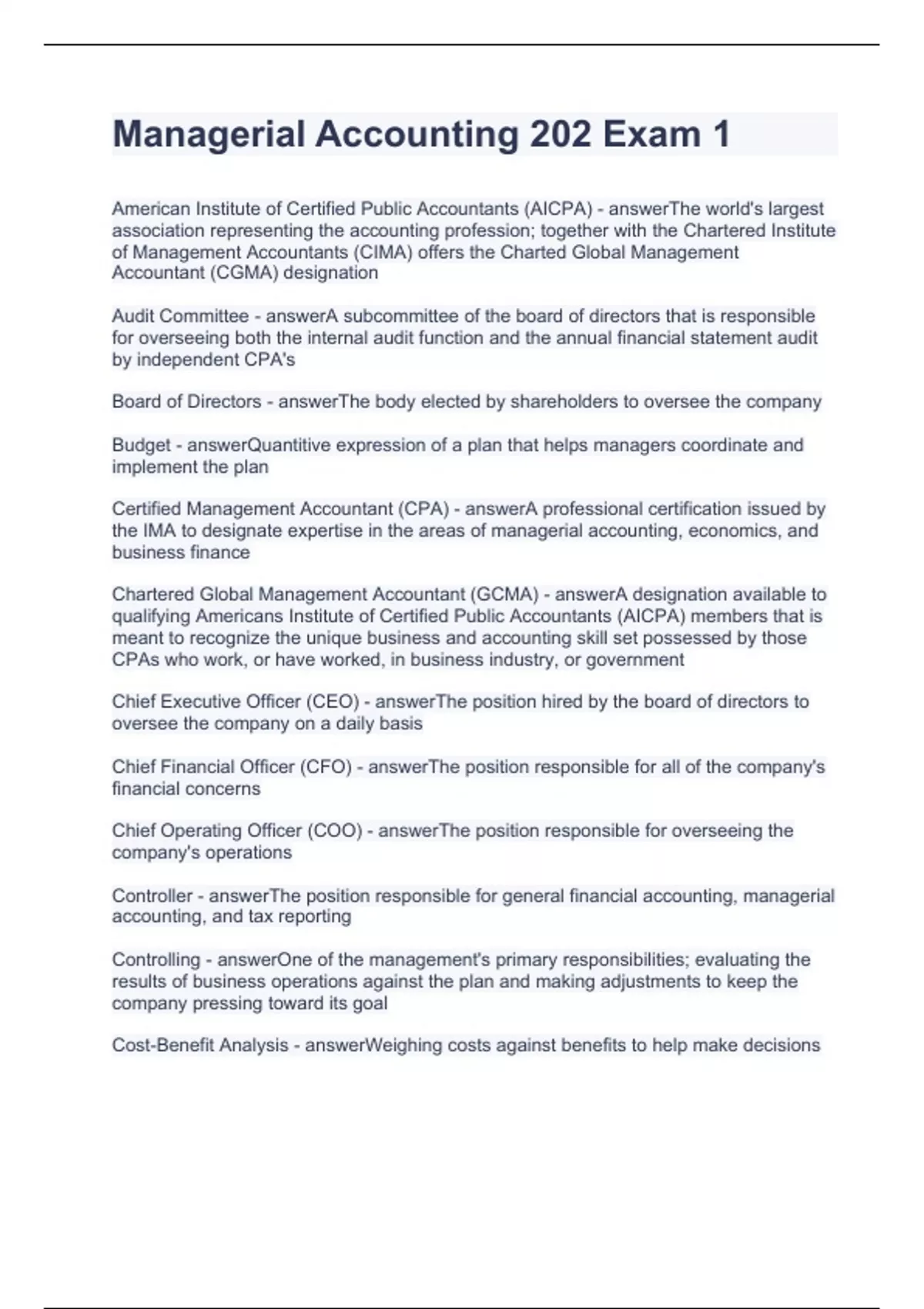 Managerial Accounting 202 Exam 1.Assignment 2023 with answers